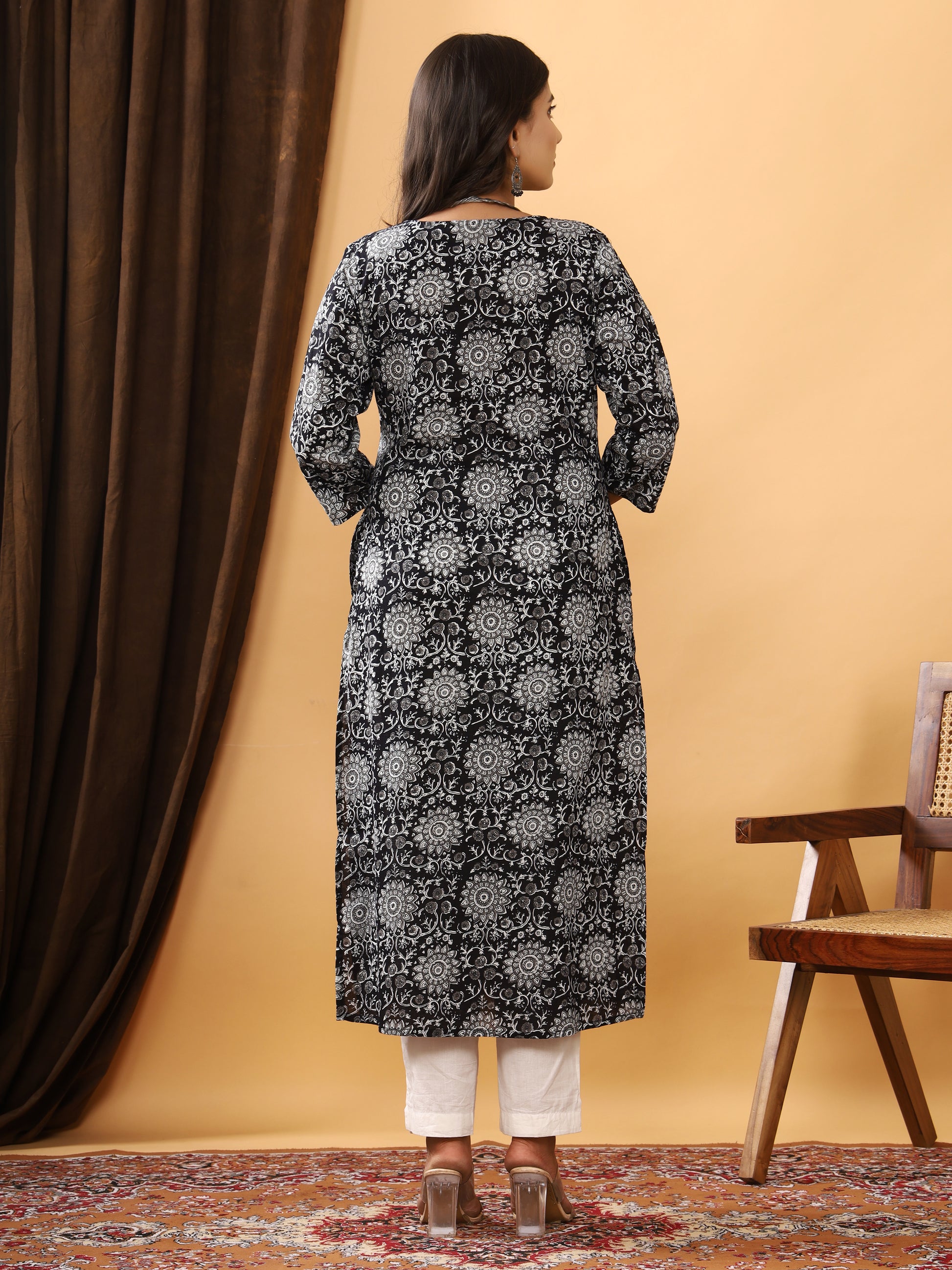 Black Color Plus Size Floral Print Cotton Straight Kurti Casual Tunic Top for Women (Kurti Only)