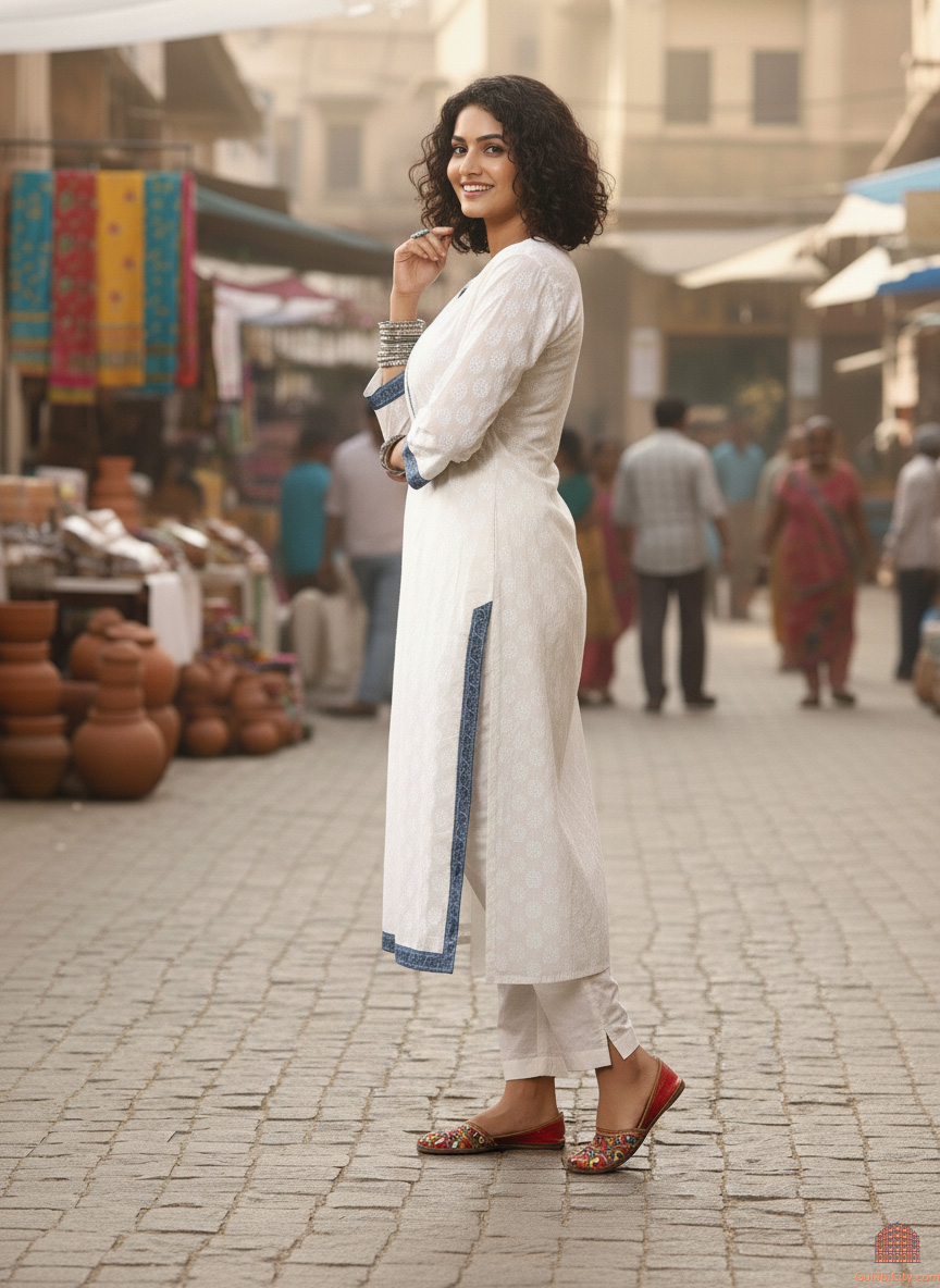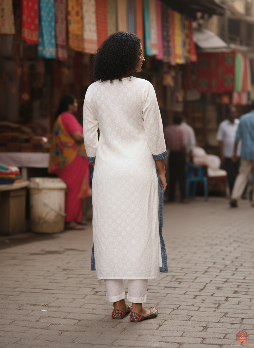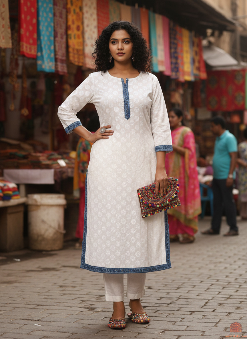 Elevate your everyday style with our Floral Print Kurti, a beautiful fusion of traditional artistry and modern comfort. Crafted from lightweight, breathable cotton, this kurti showcases an all-over floral block print in a refreshing shade-a striking example of India's rich textile heritage. The delicate motifs, created using natural, eco-friendly dyes, offer a soft yet captivating aesthetic. Sustainably made and kind to your skin, this kurti not only looks good but also aligns with conscious living. Thoughtfully designed for both comfort and versatility, it features flattering 3/4th sleeves and practical side pockets perfect for everything from casual outings to warm, sunny days. Whether you're dressing up or keeping it relaxed, this kurti effortlessly adapts to your mood and lifestyle.