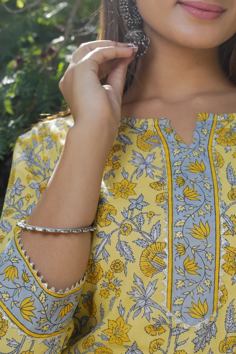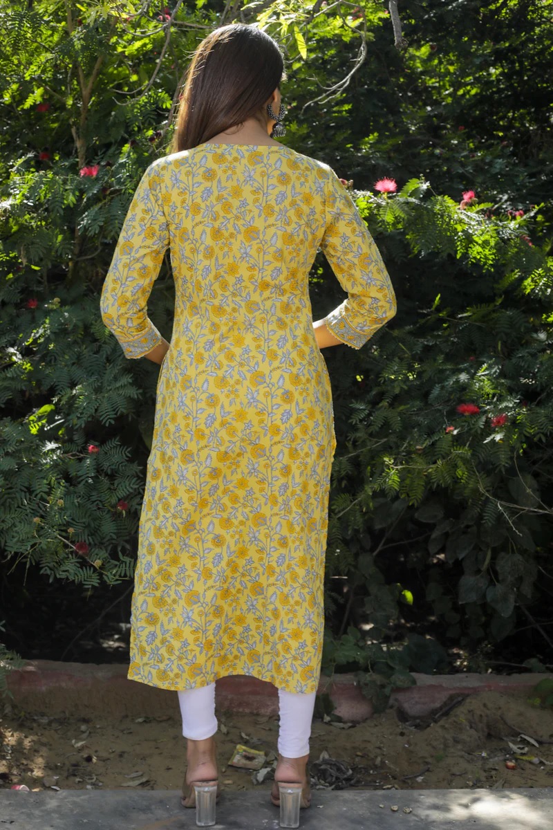Elevate your everyday style with our Floral Print Kurti, a beautiful fusion of traditional artistry and modern comfort. Crafted from lightweight, breathable cotton, this kurti showcases an all-over floral block print in a refreshing shade-a striking example of India's rich textile heritage. The delicate motifs, created using natural, eco-friendly dyes, offer a soft yet captivating aesthetic. Sustainably made and kind to your skin, this kurti not only looks good but also aligns with conscious living. Thoughtfully designed for both comfort and versatility, it features flattering 3/4th sleeves and practical side pockets perfect for everything from casual outings to warm, sunny days. Whether you're dressing up or keeping it relaxed, this kurti effortlessly adapts to your mood and lifestyle.