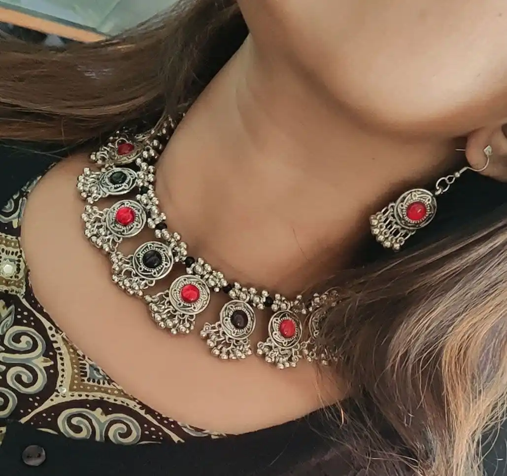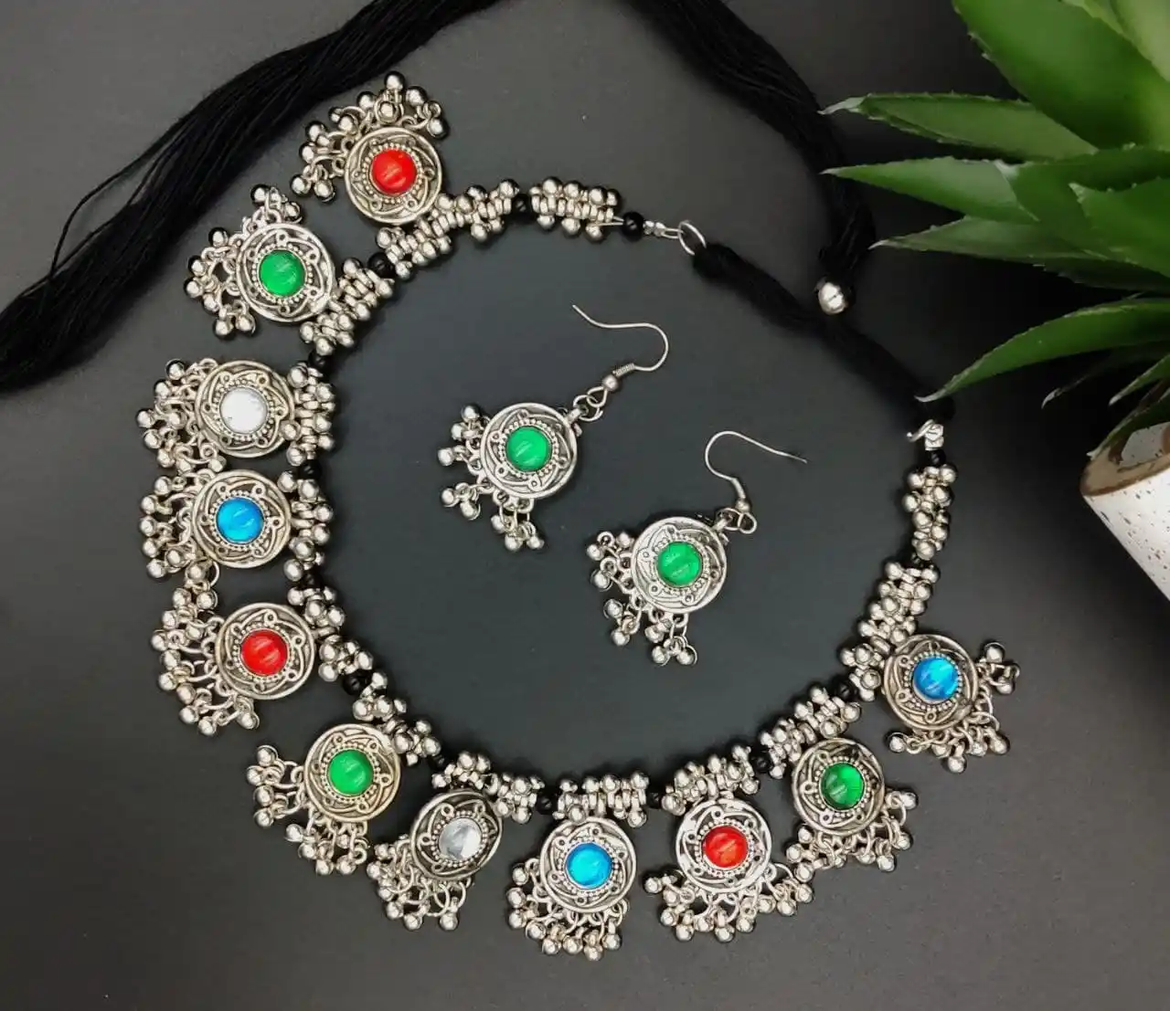 Multicolor Choker Necklace Earring Set Indian Fashion Jewellery
