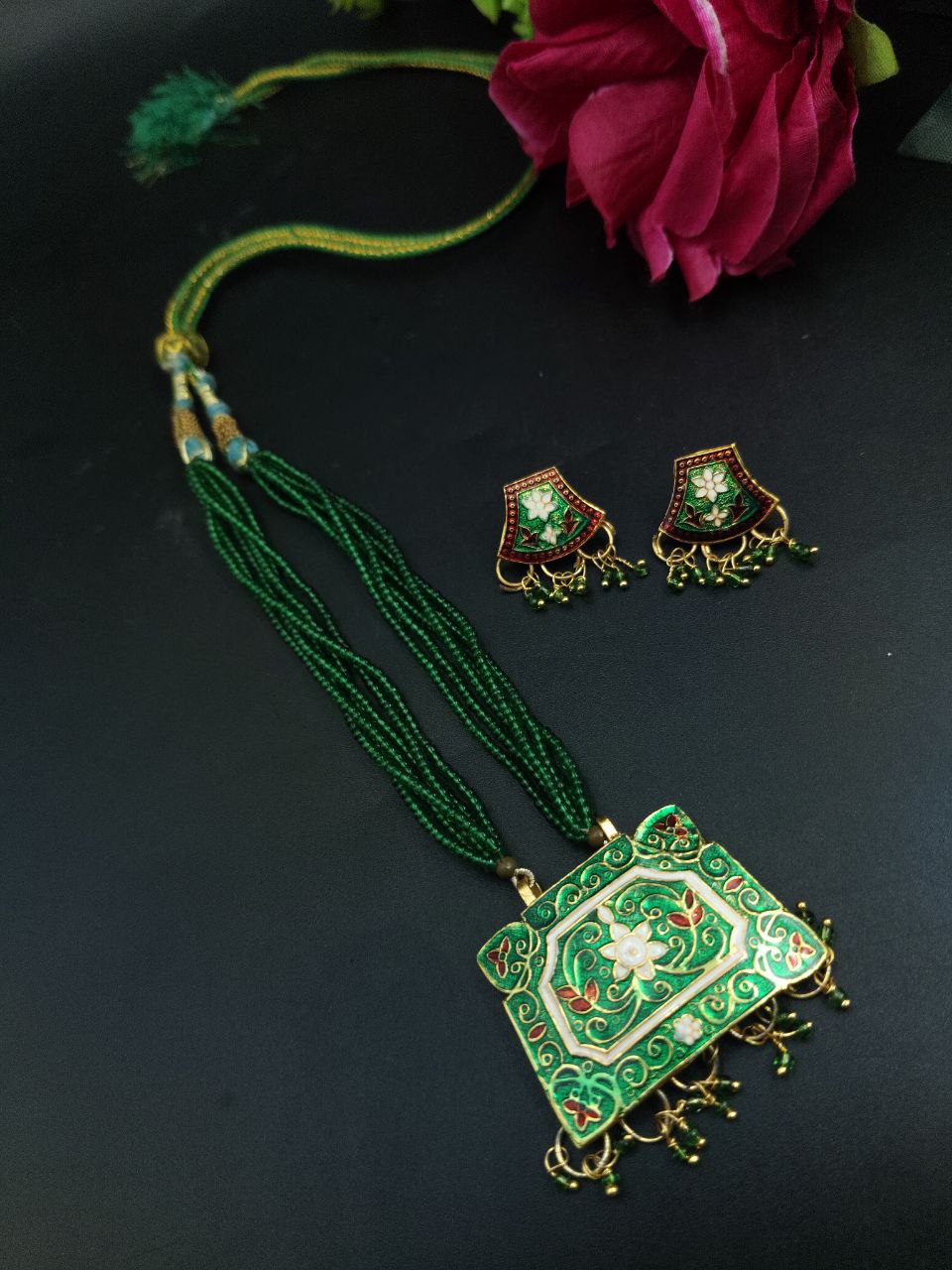 Traditional Meenakari Necklace Gold Plated Ethnic Indian Jewellery Long Neck Piece with Matching Earrings Set