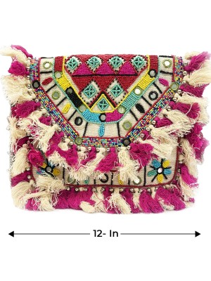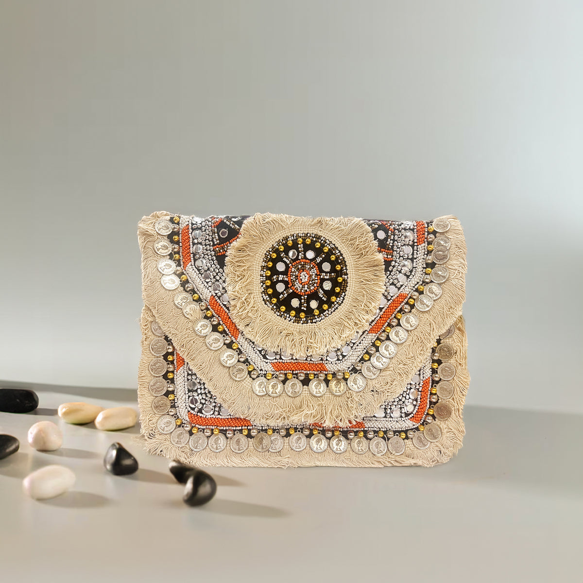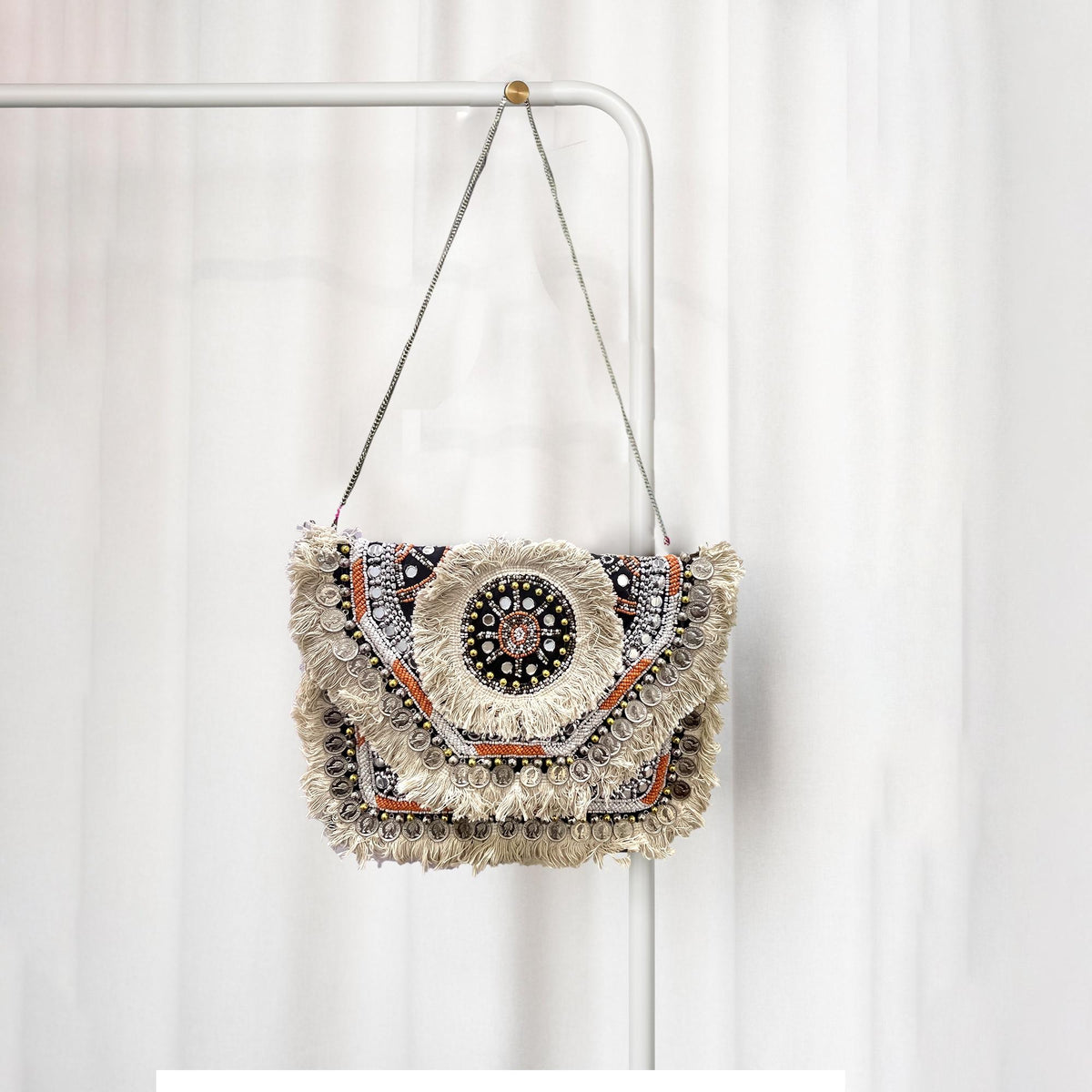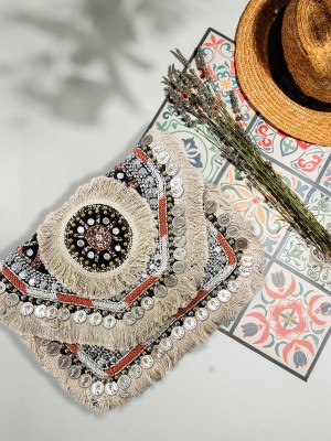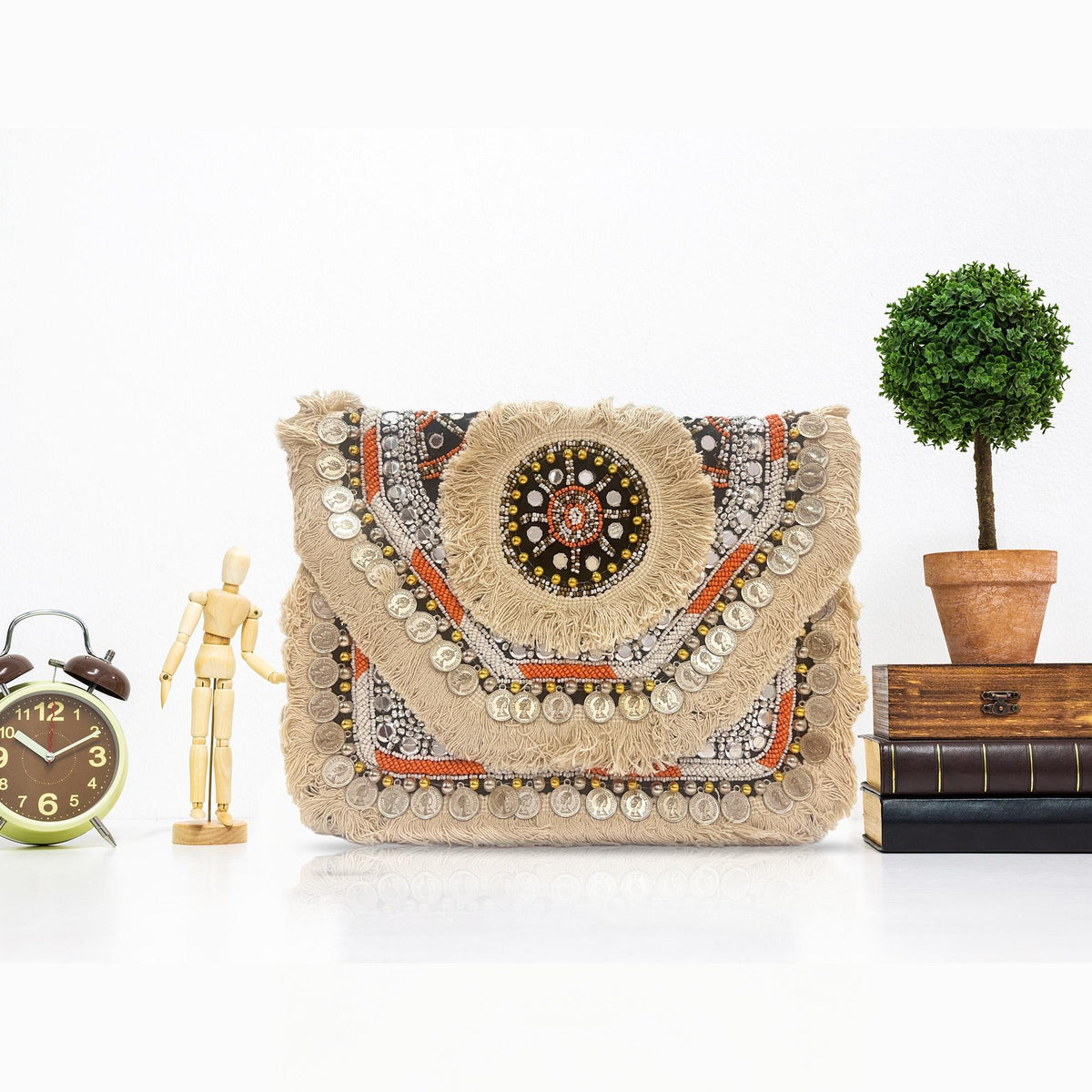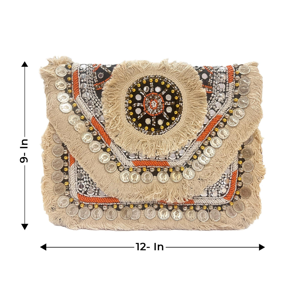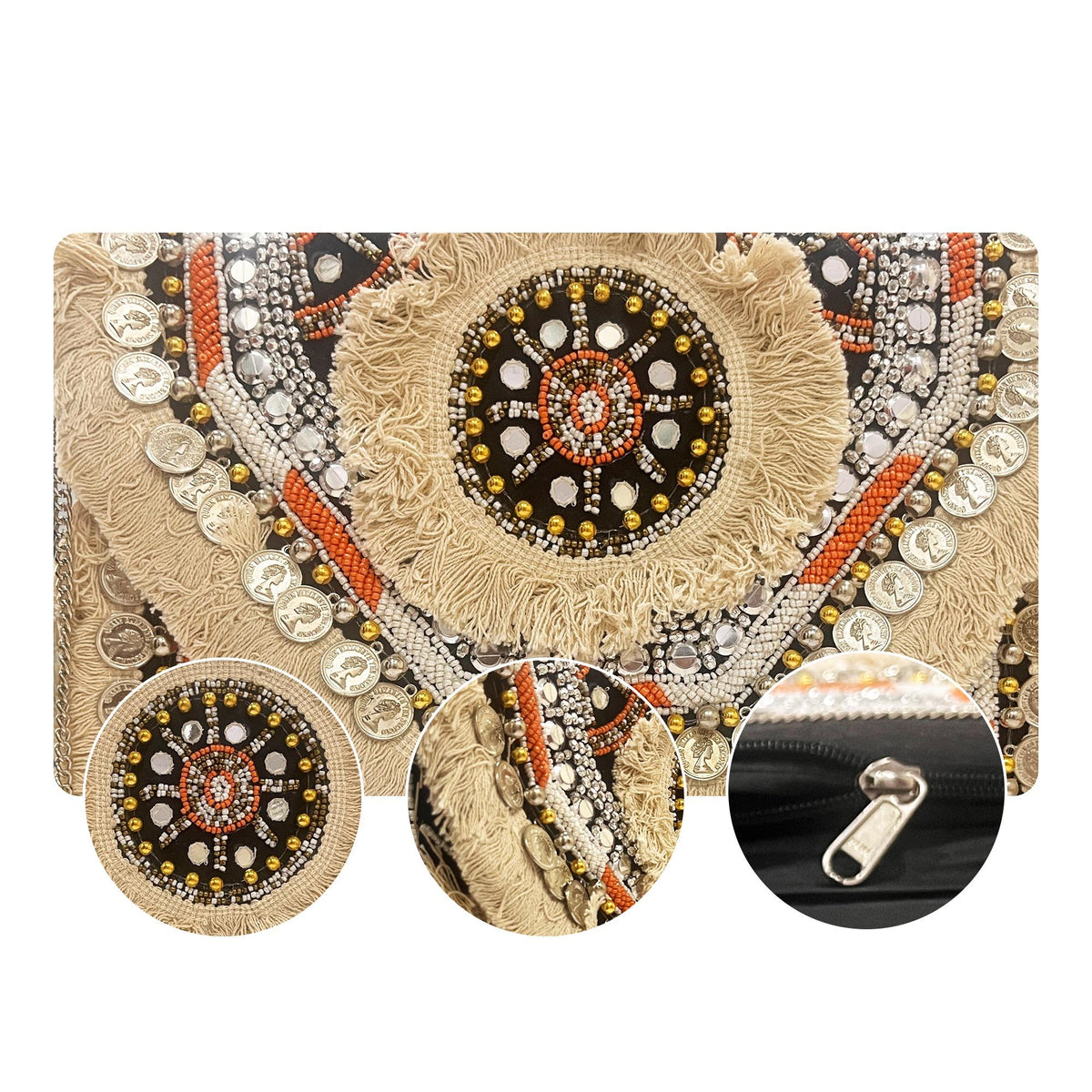 Unique Boho Gypsy Bag Vintage Handmade Coin Beaded Embellished Crossbody Bag for Women Casual Outing