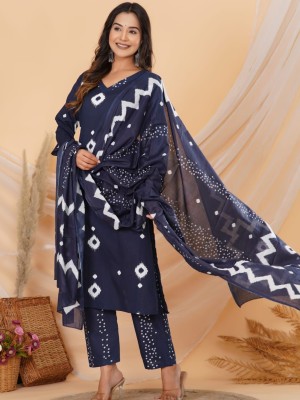 Royal Blue Printed Cotton Suit For All Day Comfort Kurti Pant Dupatta Salwar Kameez Set for Women