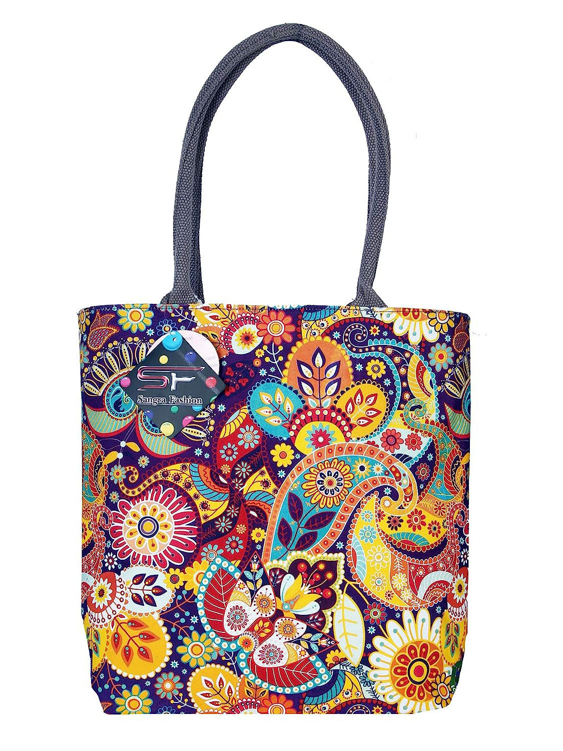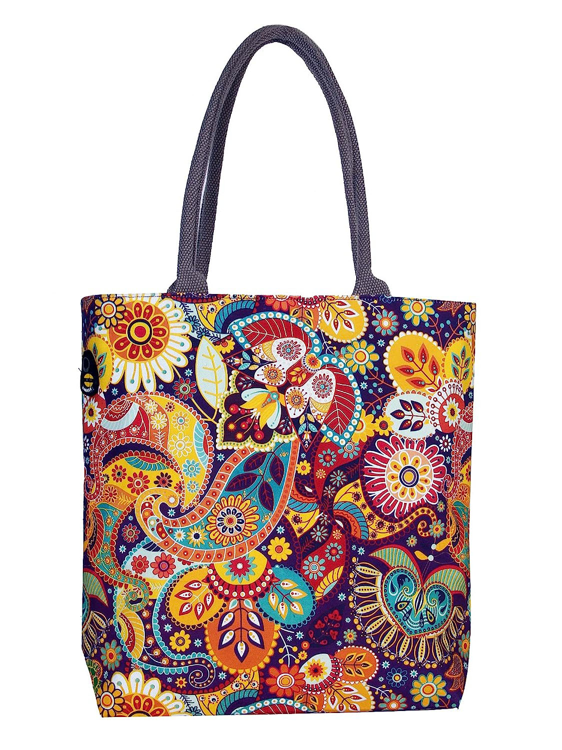 Psychedelic Multicolored Paisley Design Canvas Tote Bag for Women