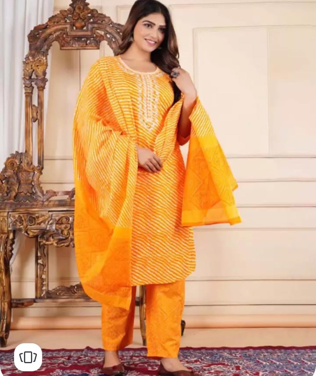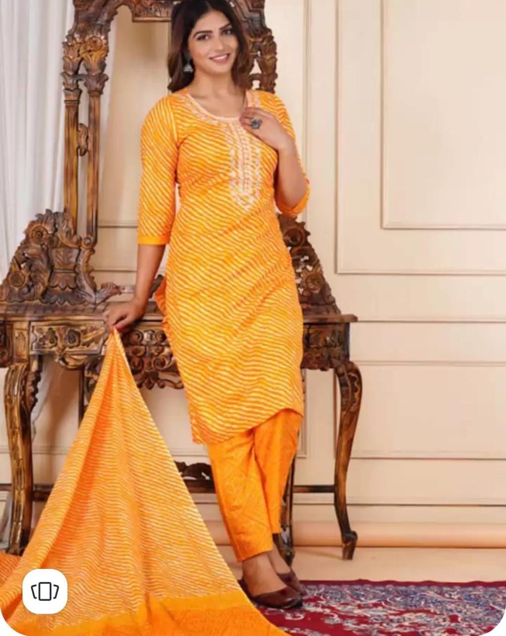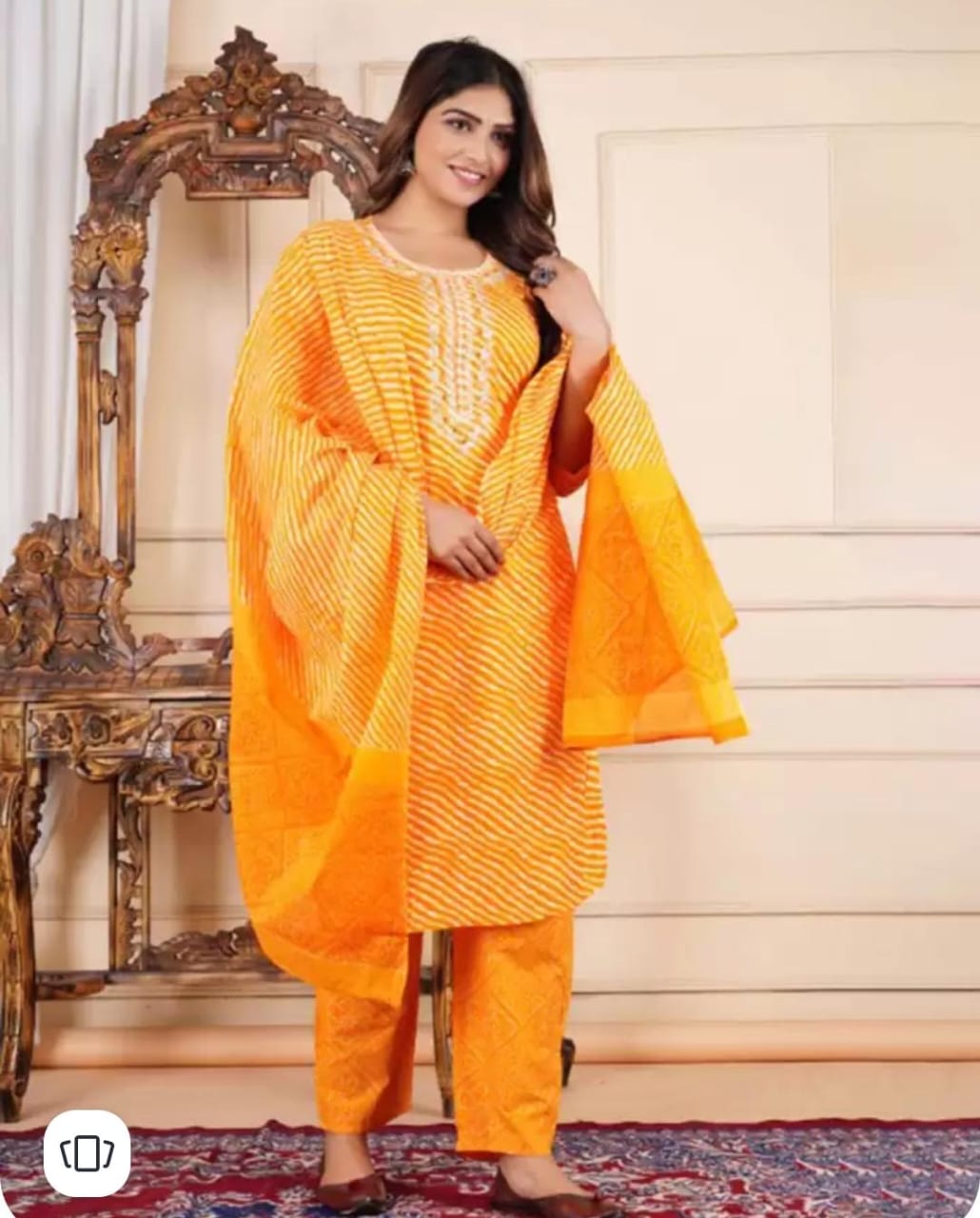 Discover timeless elegance with our Lehariya Printed Salwar Kameez Set. This enchanting ensemble features a straight-cut kurti adorned with a vibrant pattern, exuding a refreshing and lively charm. The matching cotton pants ensure a seamless fit, while the accompanying dupatta adds an extra layer of grace. Kurti is crafted from high-quality Cotton fabric, this set offers both comfort and style, making it ideal for festive events or casual outings. Embrace sophistication and color with this beautifully coordinated Indian-Pakistani ethnic outfit.