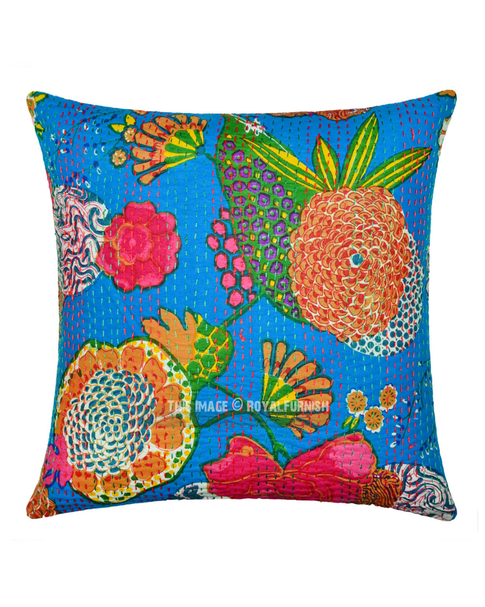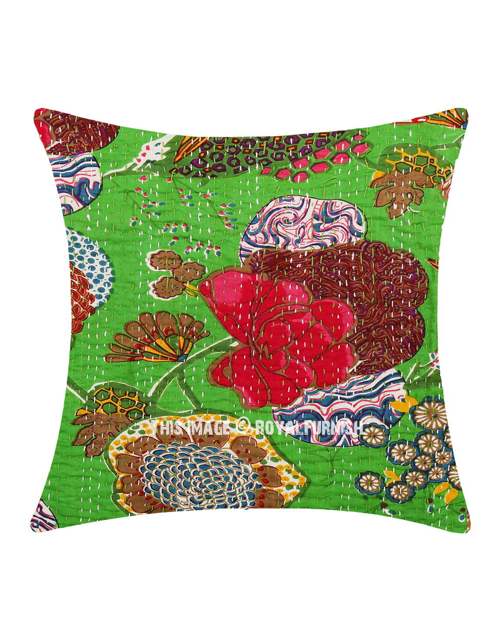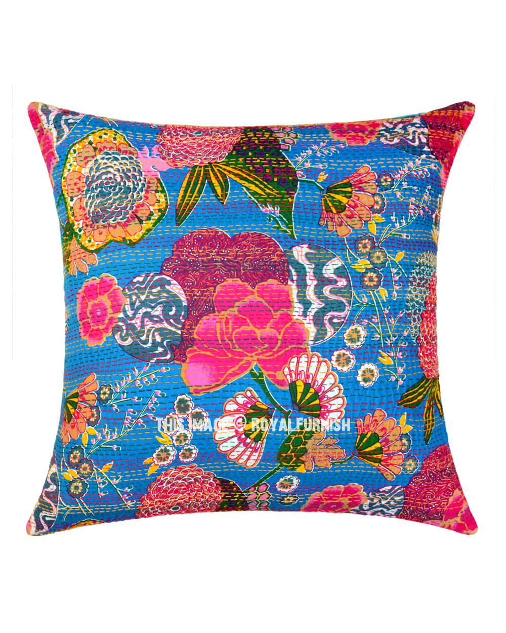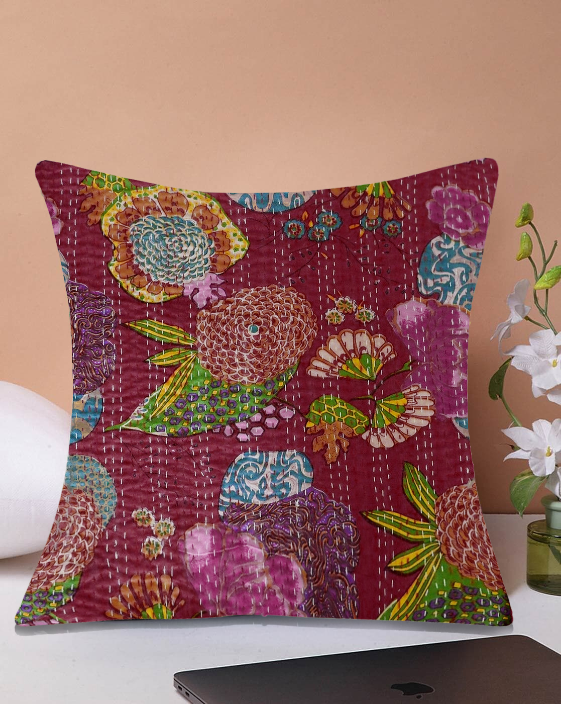 Add some brightness and freshness into your living room or bedroom with India made kantha throw pillow case. The soft and lustrous kantha pillow is made using 100% fine quality cotton fabric. Kantha is traditional art work used in rural area of India. It will add instant fun into the room with its vivid presence. This cushion ensures a long-lasting use and the zipper envelope closure the cover makes you put in a cushion easily