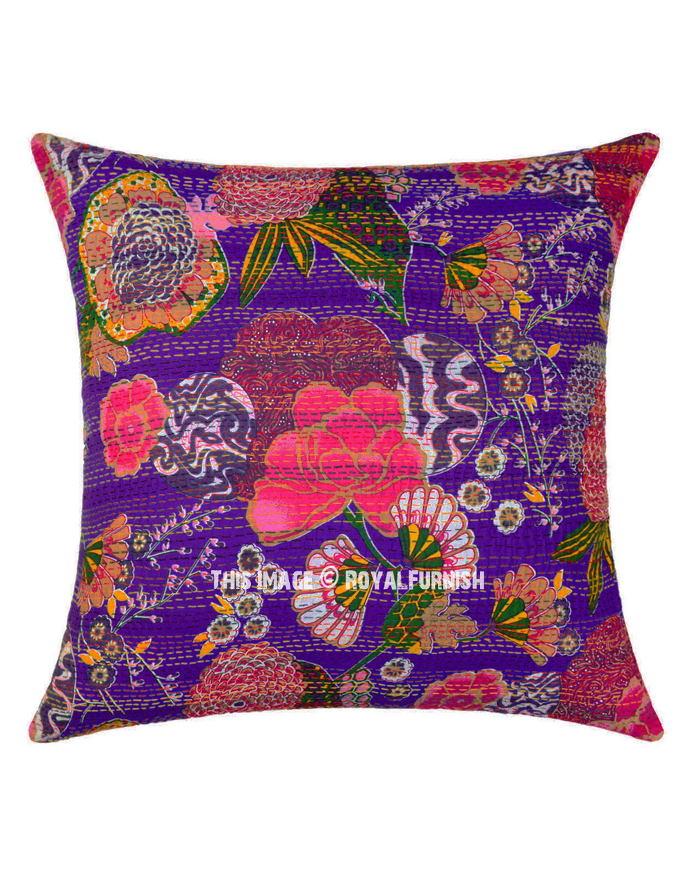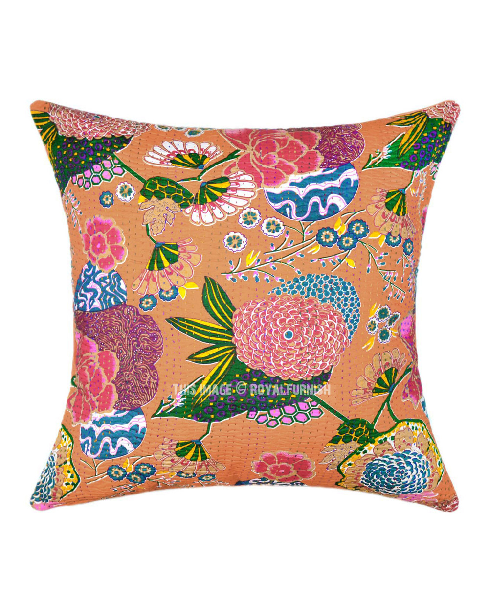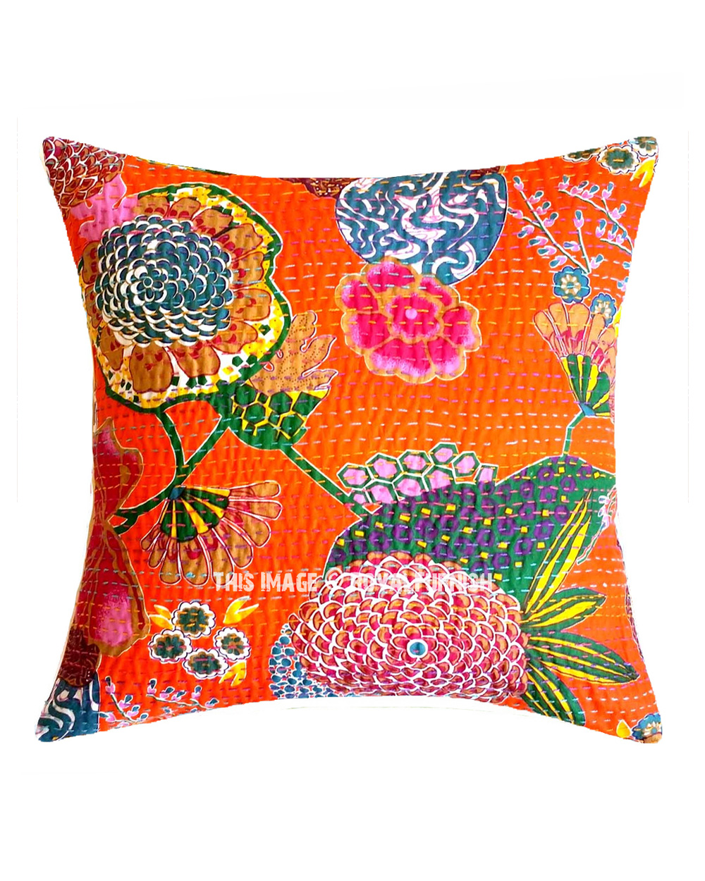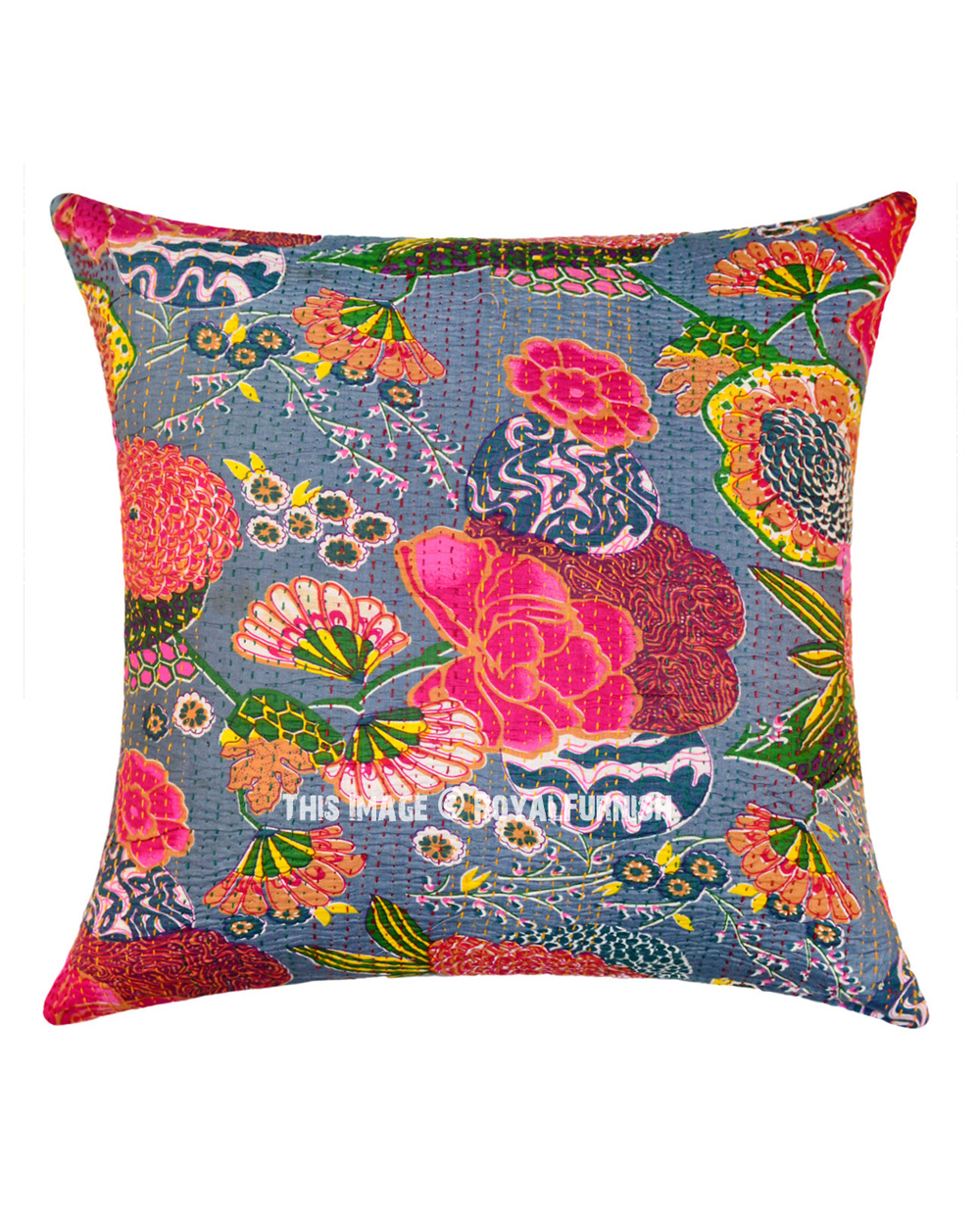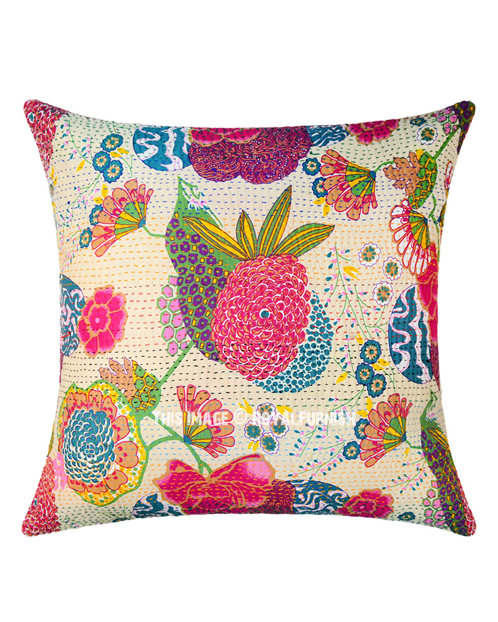 Add some brightness and freshness into your living room or bedroom with India made kantha throw pillow case. The soft and lustrous kantha pillow is made using 100% fine quality cotton fabric. Kantha is traditional art work used in rural area of India. It will add instant fun into the room with its vivid presence. This cushion ensures a long-lasting use and the zipper envelope closure the cover makes you put in a cushion easily
