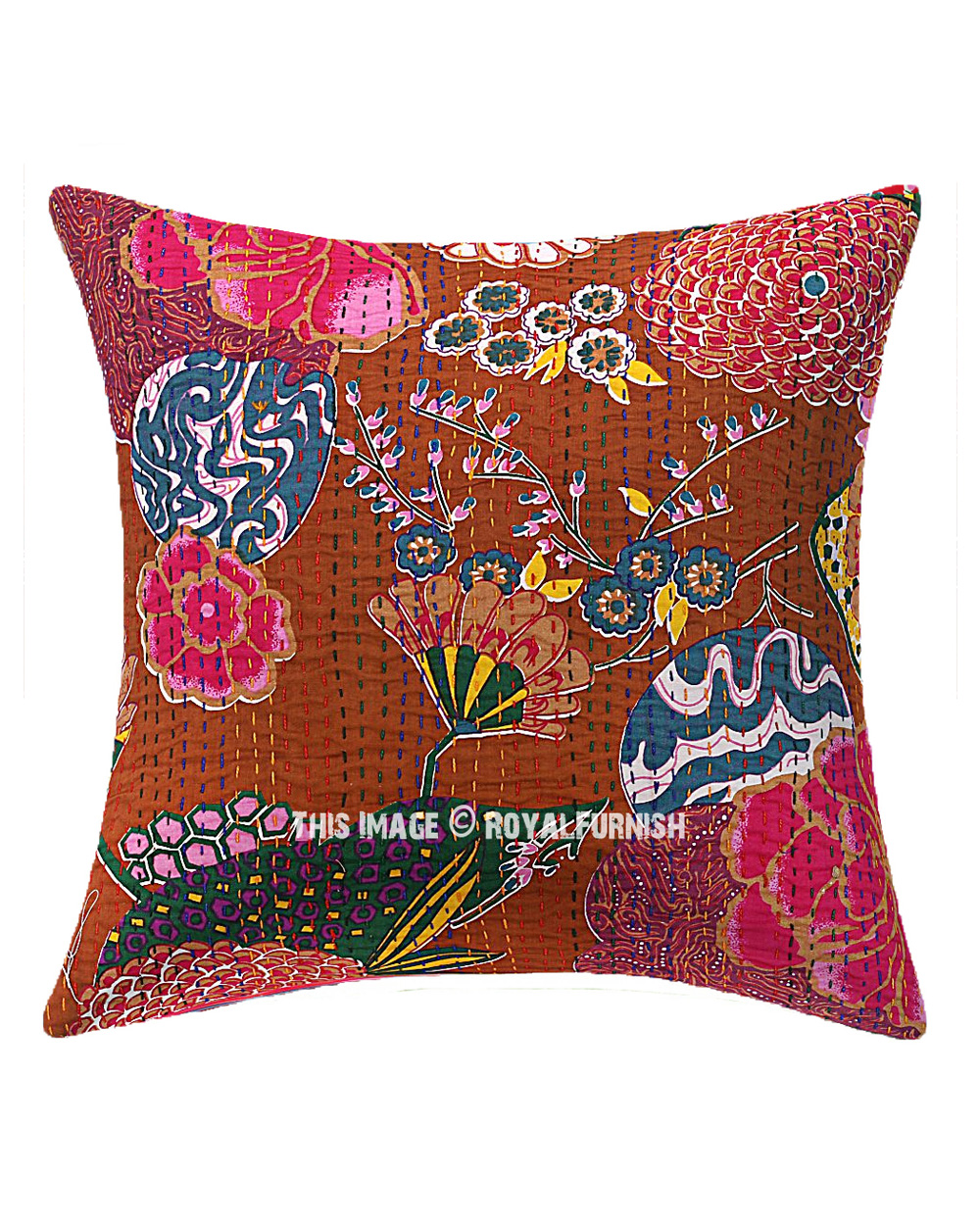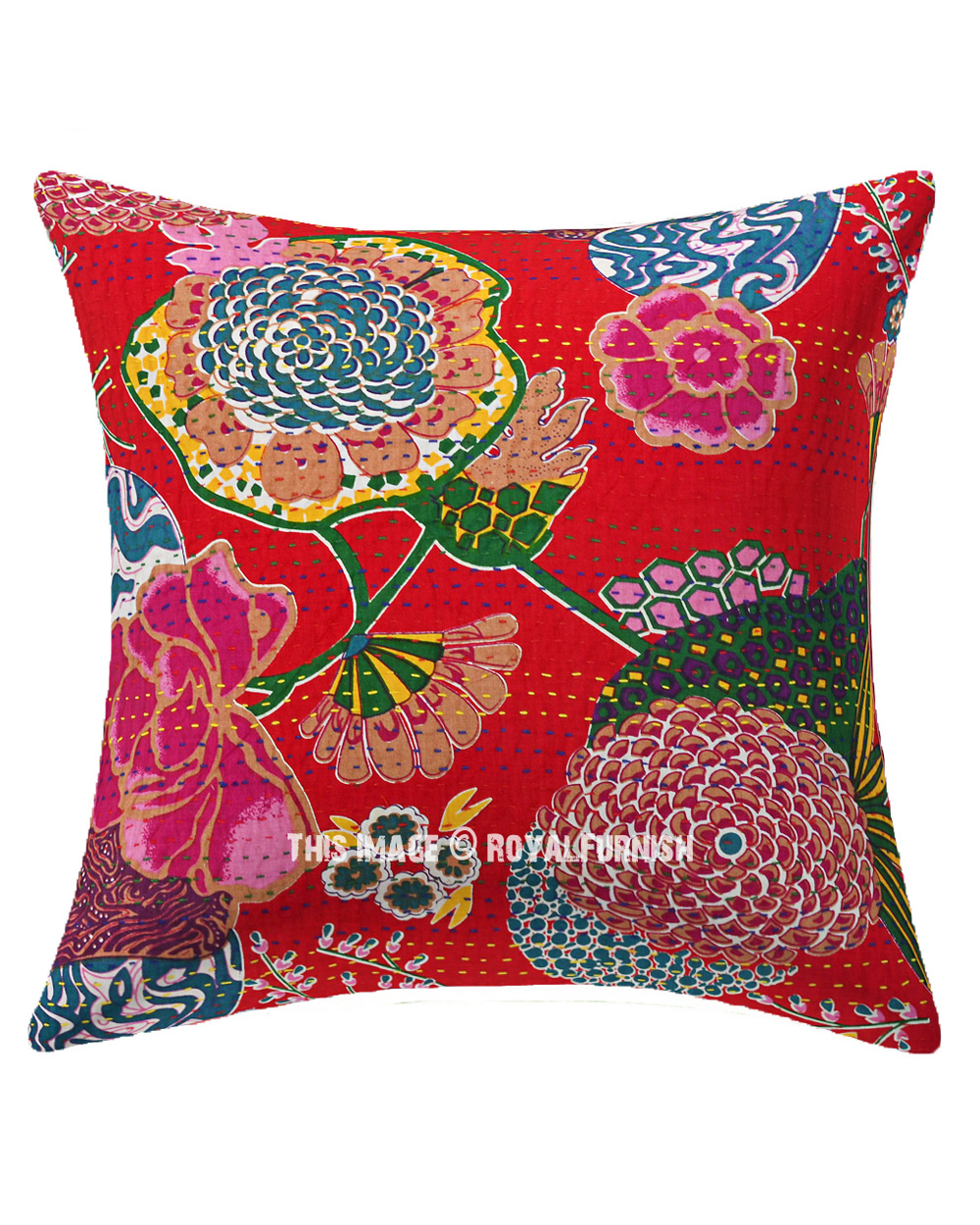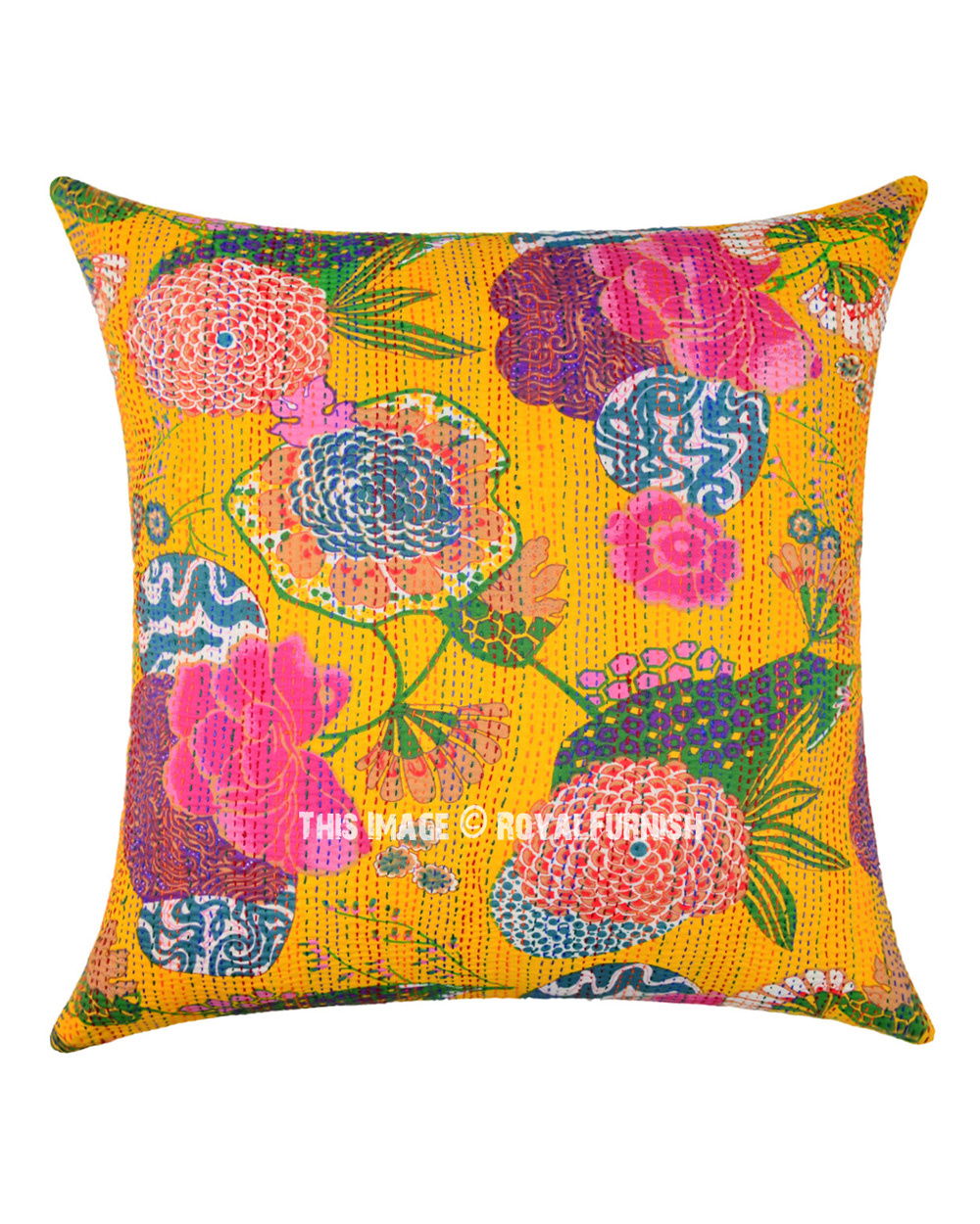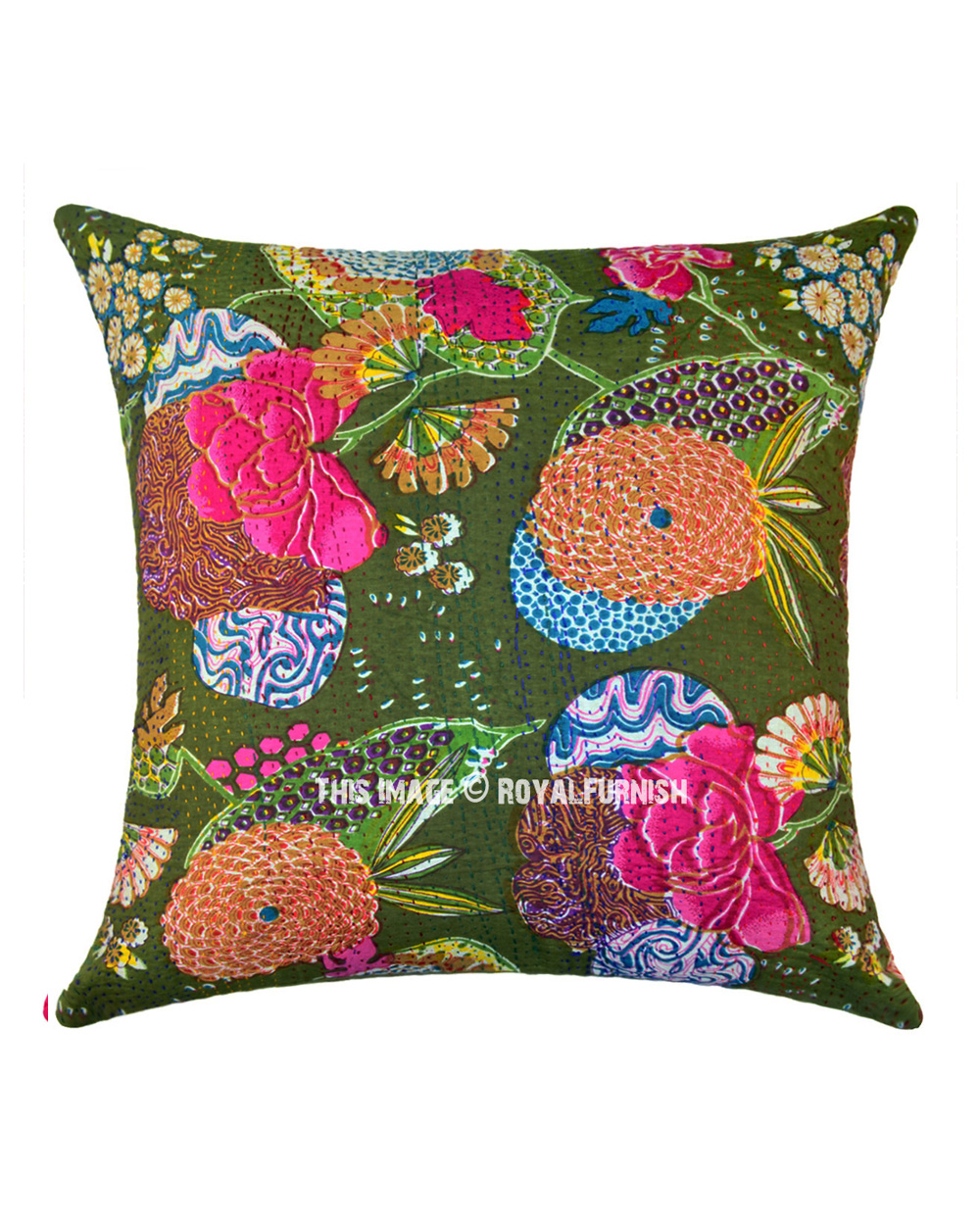 Add some brightness and freshness into your living room or bedroom with India made kantha throw pillow case. The soft and lustrous kantha pillow is made using 100% fine quality cotton fabric. Kantha is traditional art work used in rural area of India. It will add instant fun into the room with its vivid presence. This cushion ensures a long-lasting use and the zipper envelope closure the cover makes you put in a cushion easily