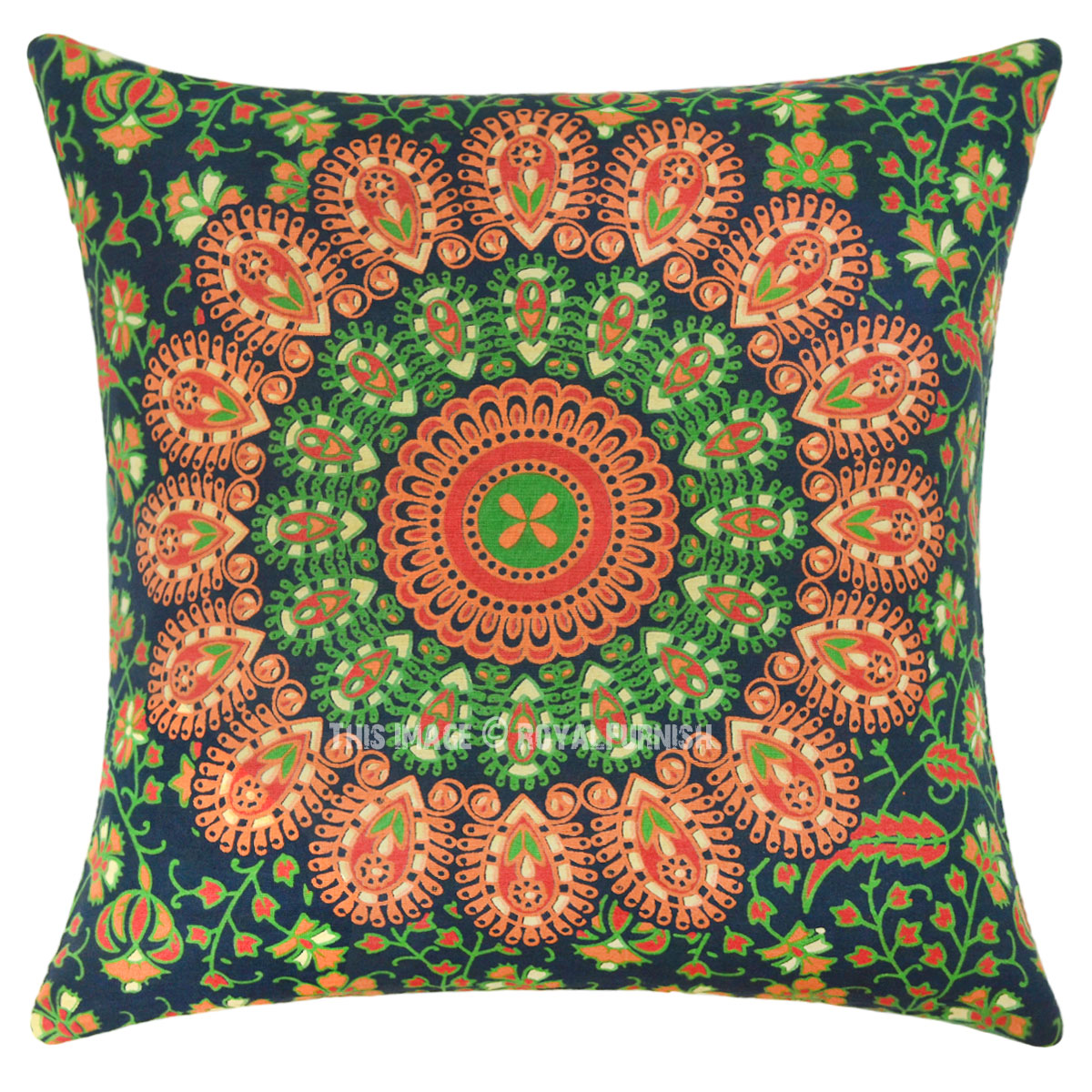 Green Multi 16" Boho Chic Mandala Cotton Square Throw Pillow Case Cushion Cover