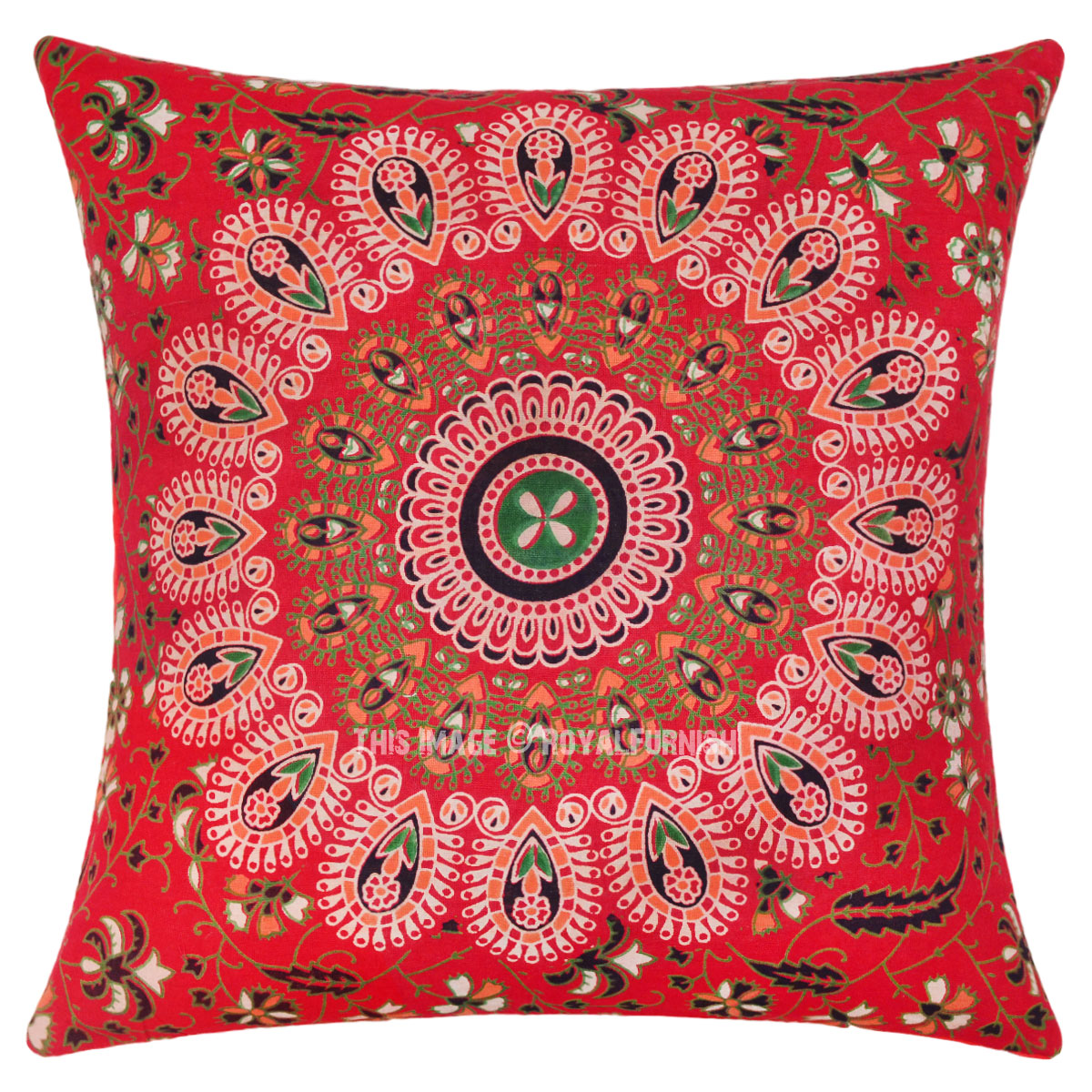 Red Multi 16" Boho Chic Mandala Cotton Square Throw Pillow Case Cushion Cover