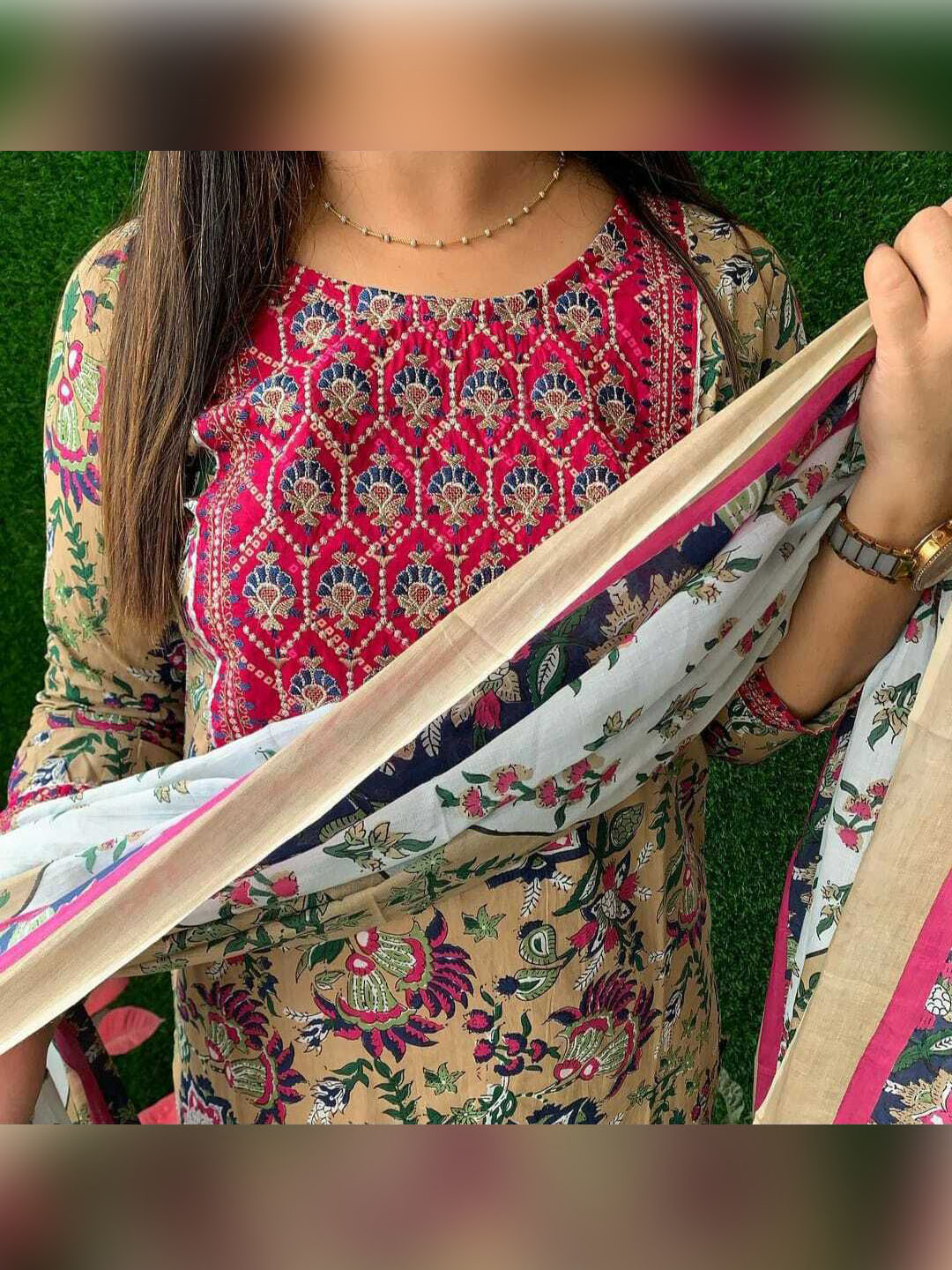 New Indian Cotton Salwar Kameez Pakistani Readymade Floral Kurti Pant Dupatta