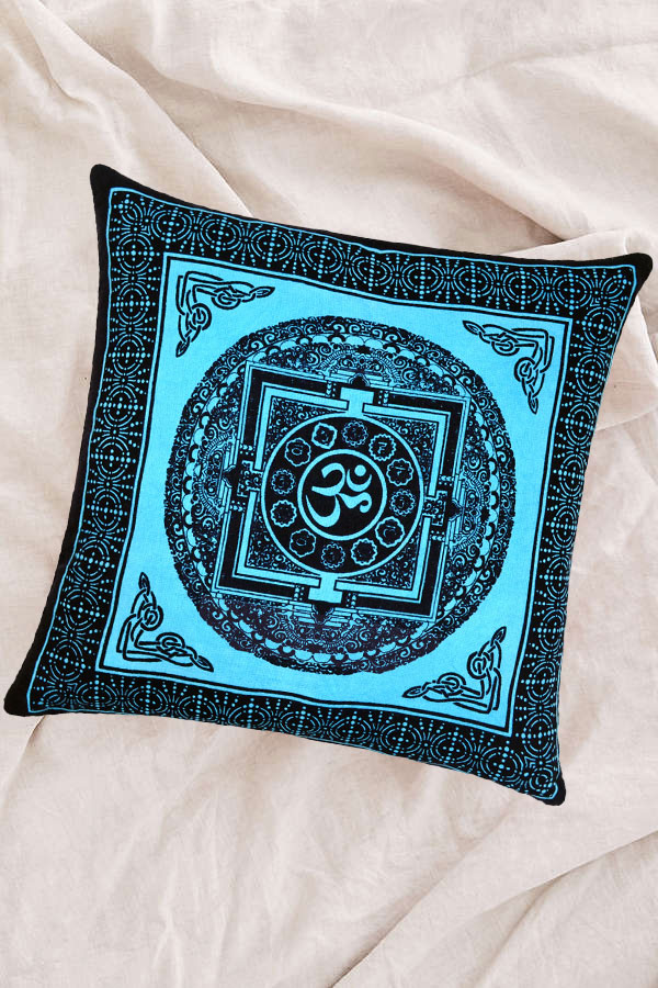 Turquoise 16" Tibetan Aum OM Symbol Printed Throw Pillow Case Yoga & Meditation Decorative Cushion Cover