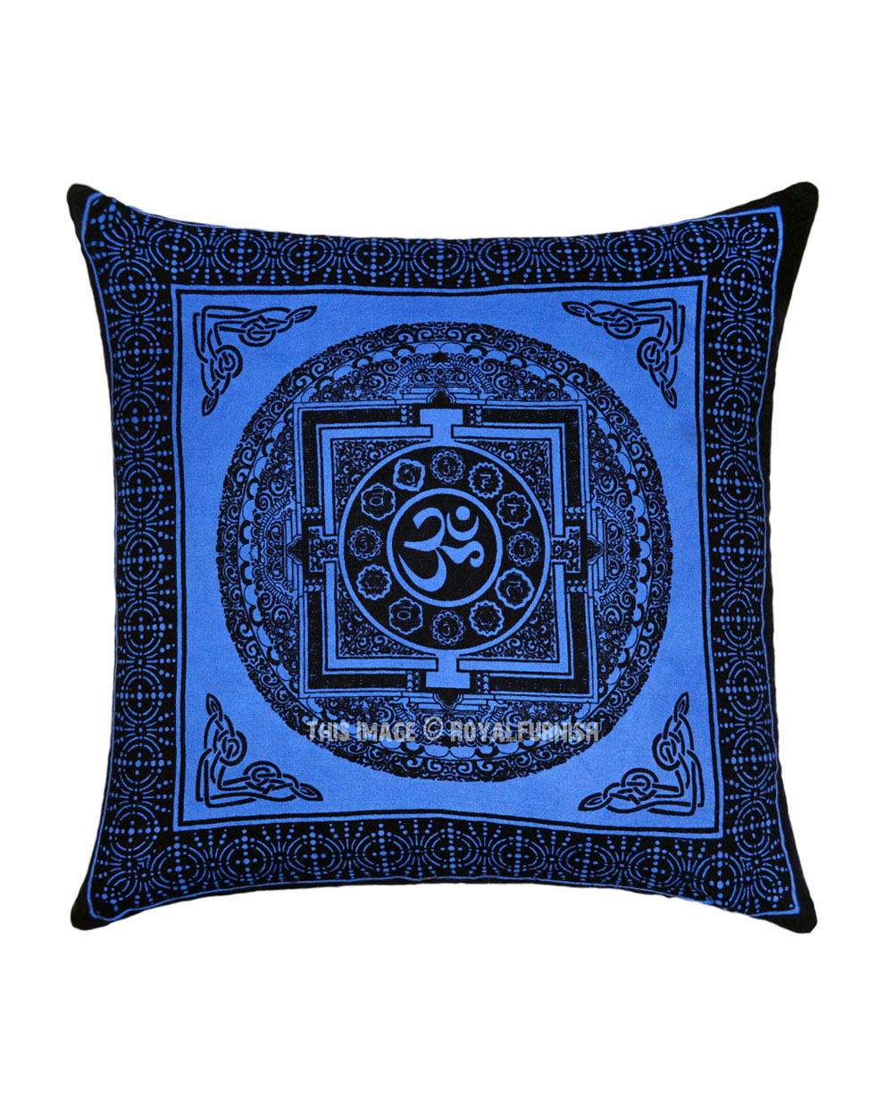 Blue 16" Tibetan Aum OM Symbol Printed Throw Pillow Case Yoga & Meditation Decorative Cushion Cover