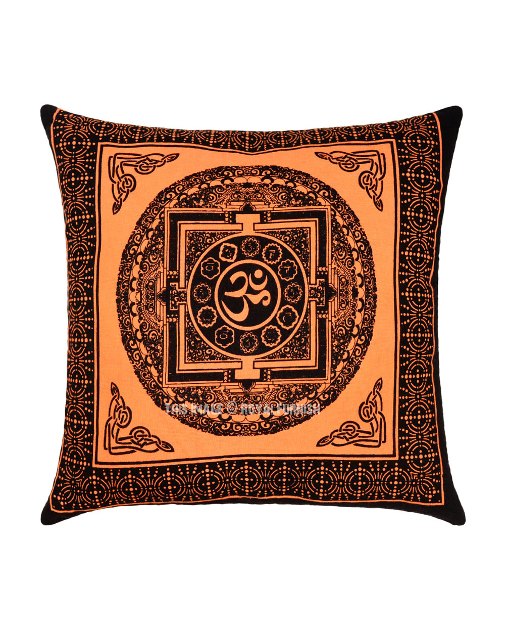 Orange 16" Tibetan Aum OM Symbol Printed Throw Pillow Case Yoga & Meditation Decorative Cushion Cover