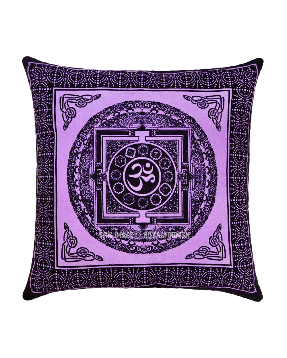 Purple 16" Tibetan Aum OM Symbol Printed Throw Pillow Case Yoga & Meditation Decorative Cushion Cover