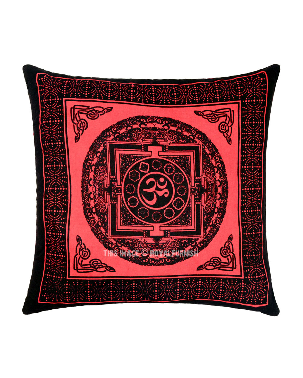 Red 16" Tibetan Aum OM Symbol Printed Throw Pillow Case Yoga & Meditation Decorative Cushion Cover