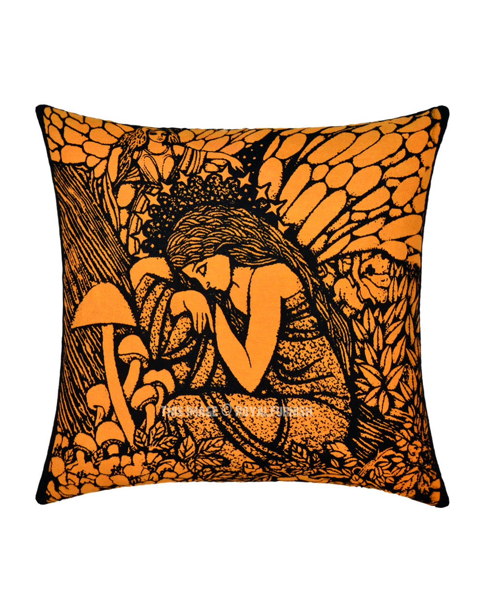 Orange 16" Hippie Tie Dye Forestcore Fairy Tale Queen Celtic Decorative Square Throw Pillow Cushion Cover