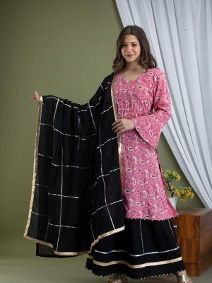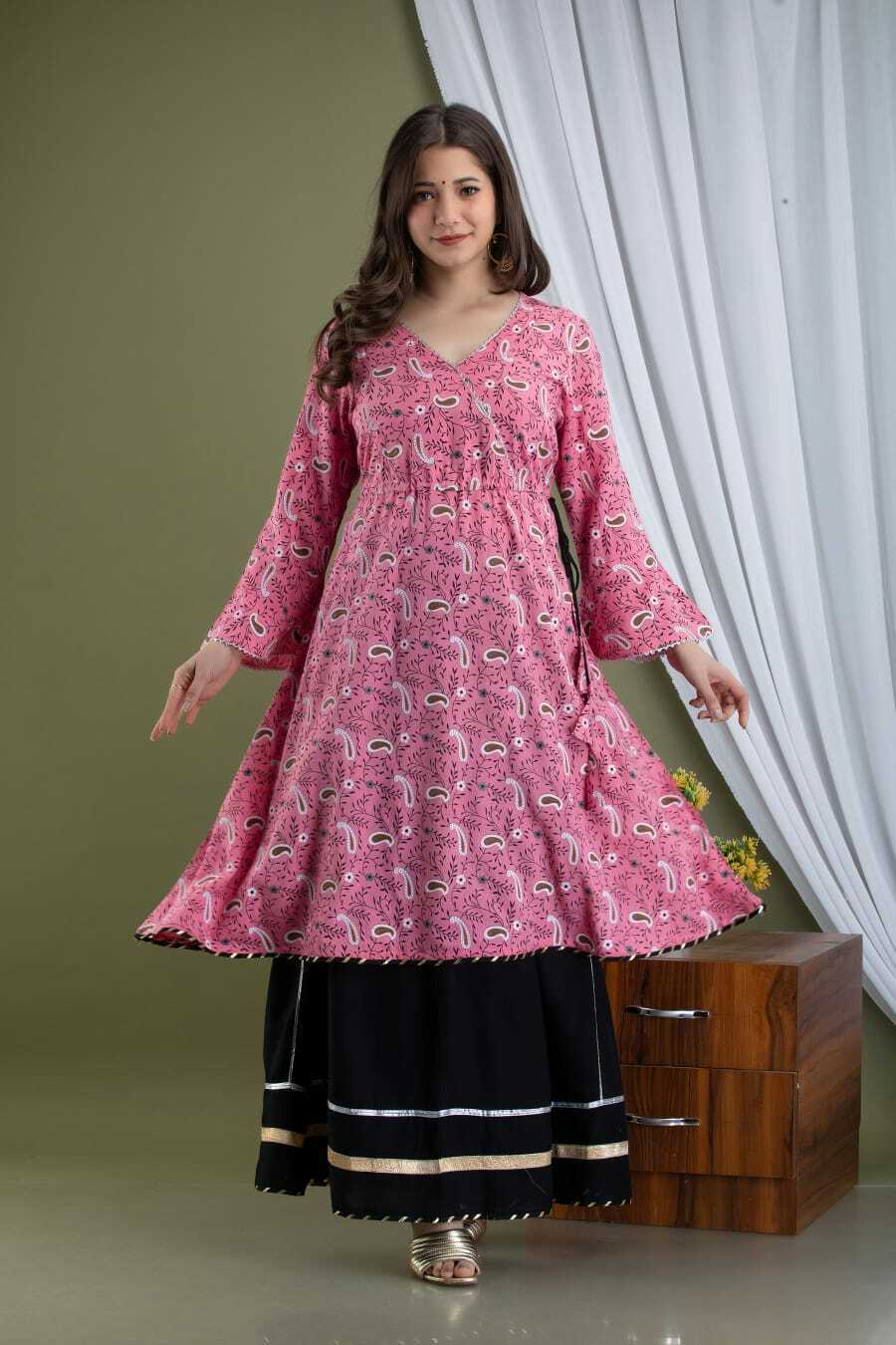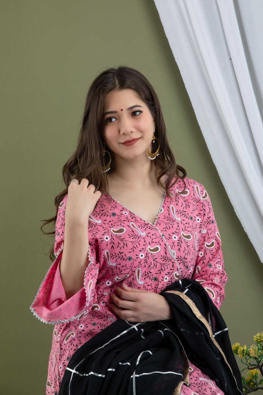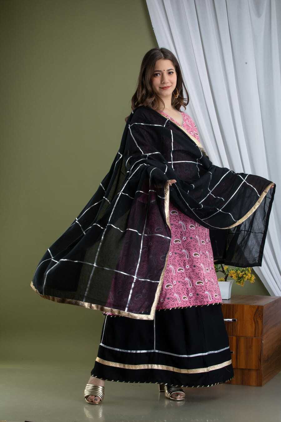 Small - Plus Size Pink & Black Kurti Lehenga Flare Skirt Dupatta Pink Paisley Kurta Dress