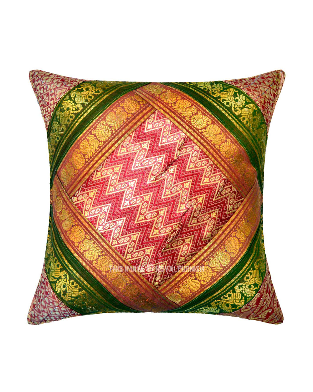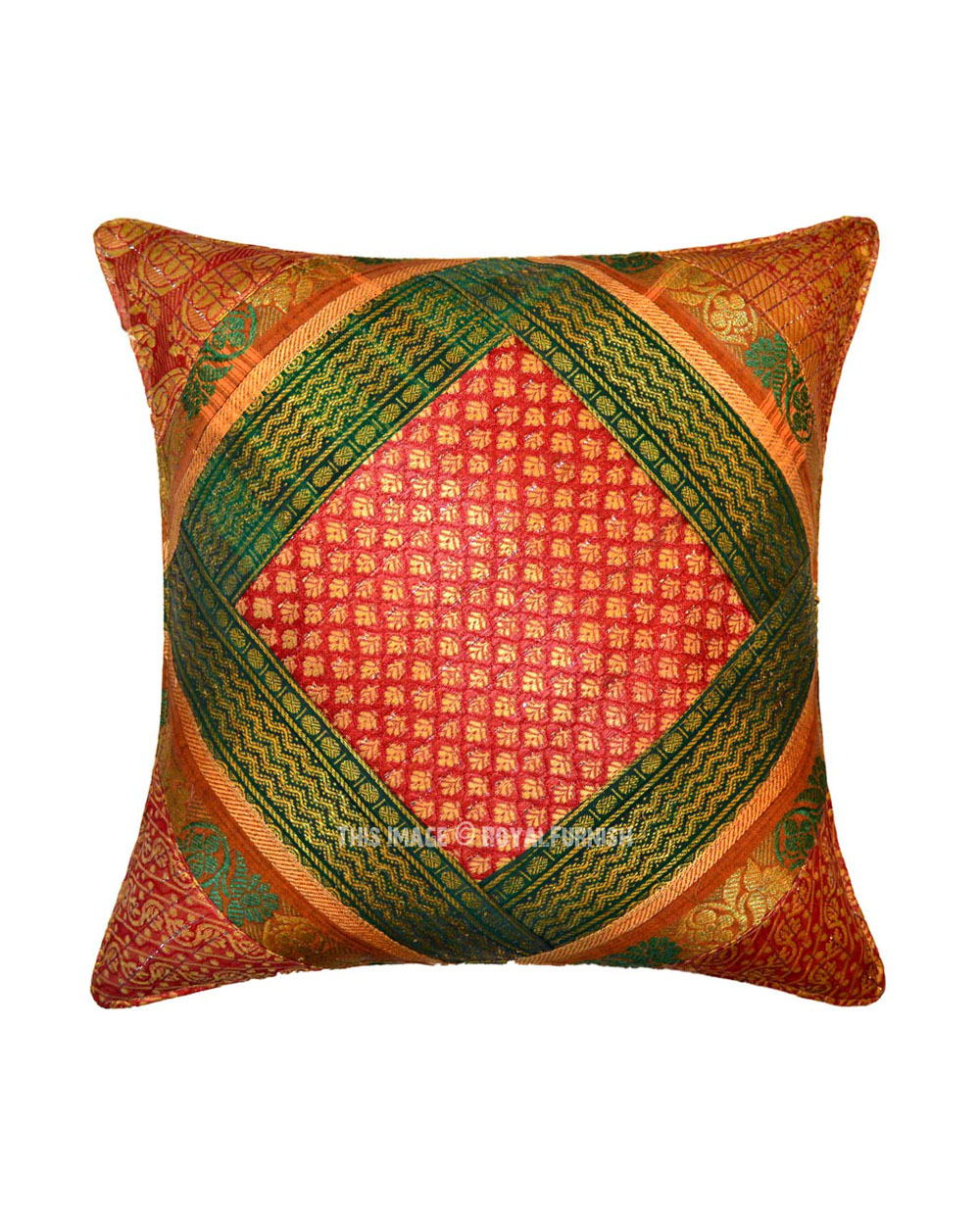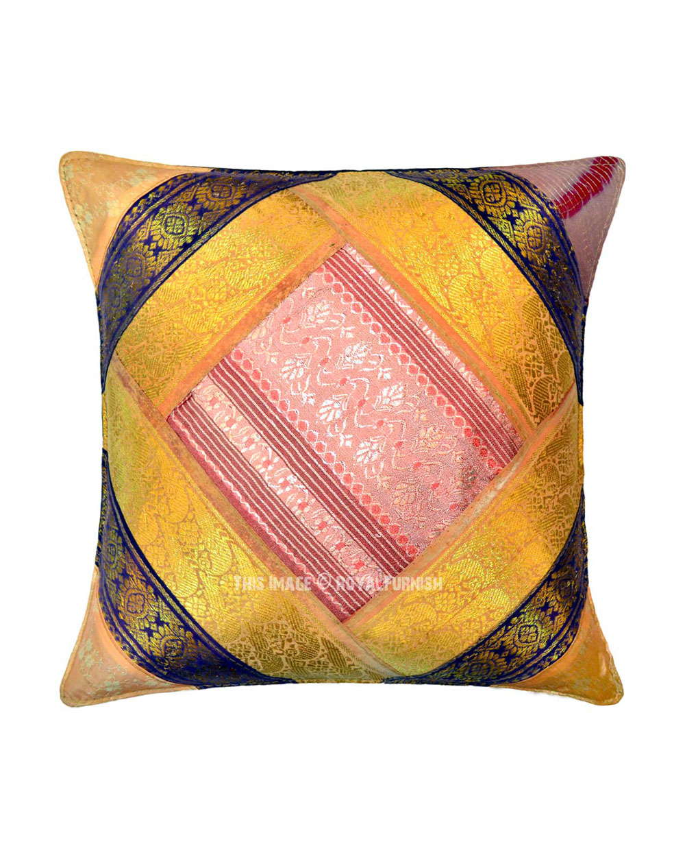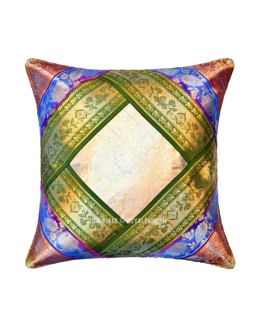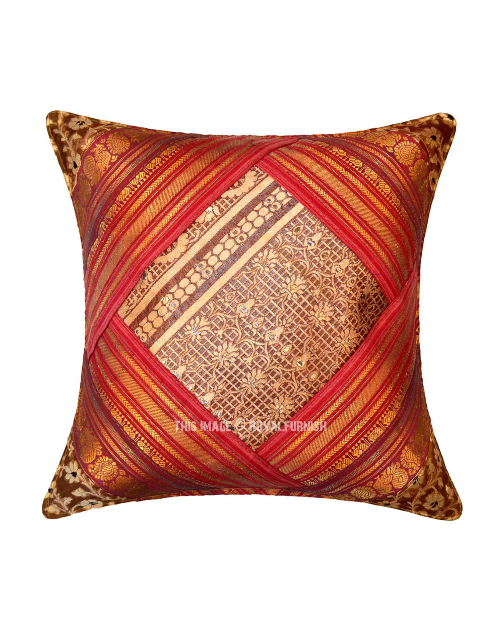 With its sleeky and shimmery surface and brocade pattern, Indian sari silk brocade pillow serves as a visual and textural expression of opulence and luxury at very cheap price. It is 100% made in India from beginning to end. The sophisticated square India silk brocade offer a perfect accent to your home furniture chair, sofa, bed. The Silk brocade pillow completes the warm look of the bedding.