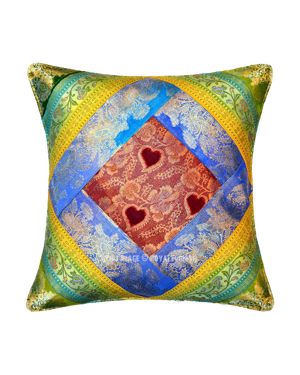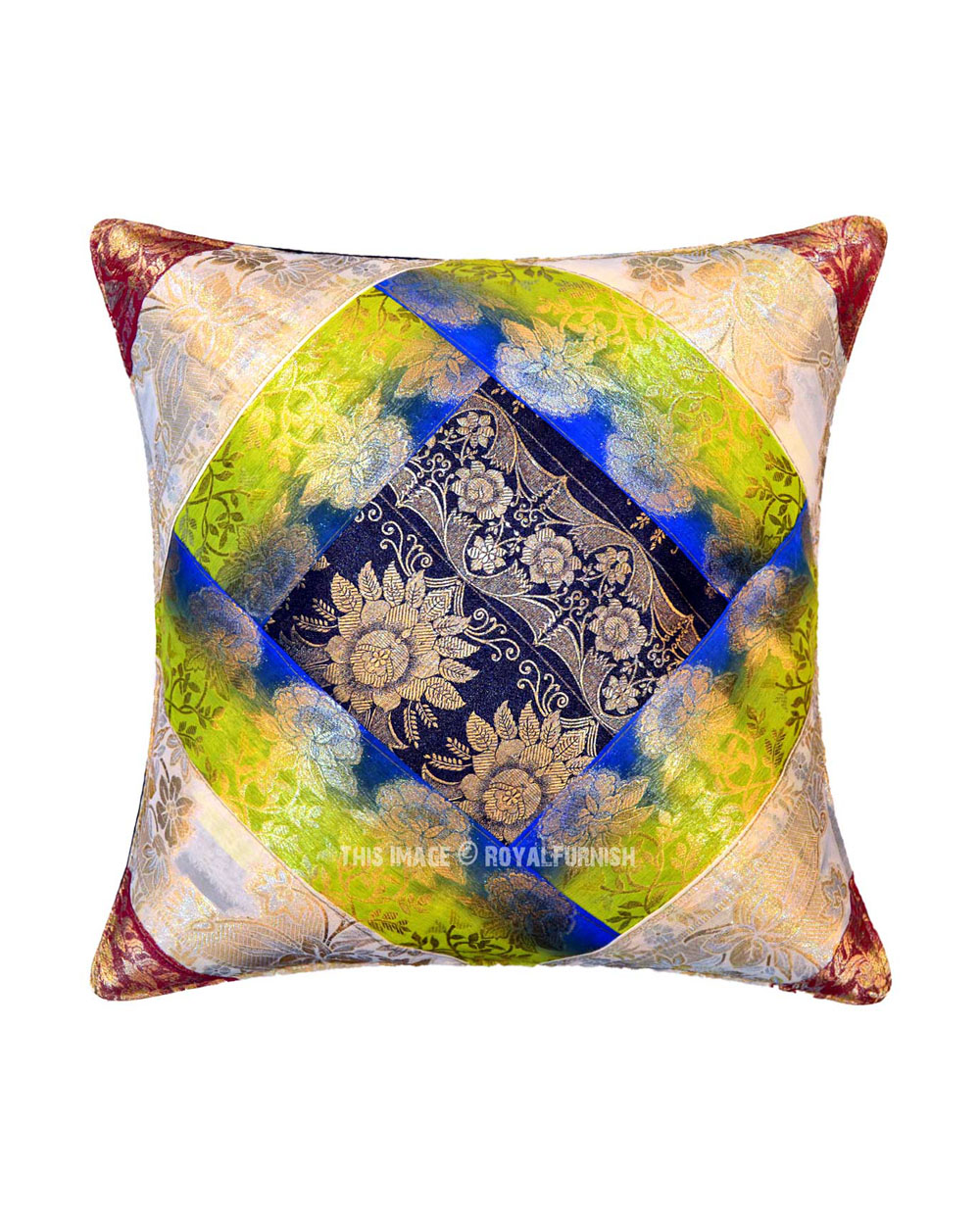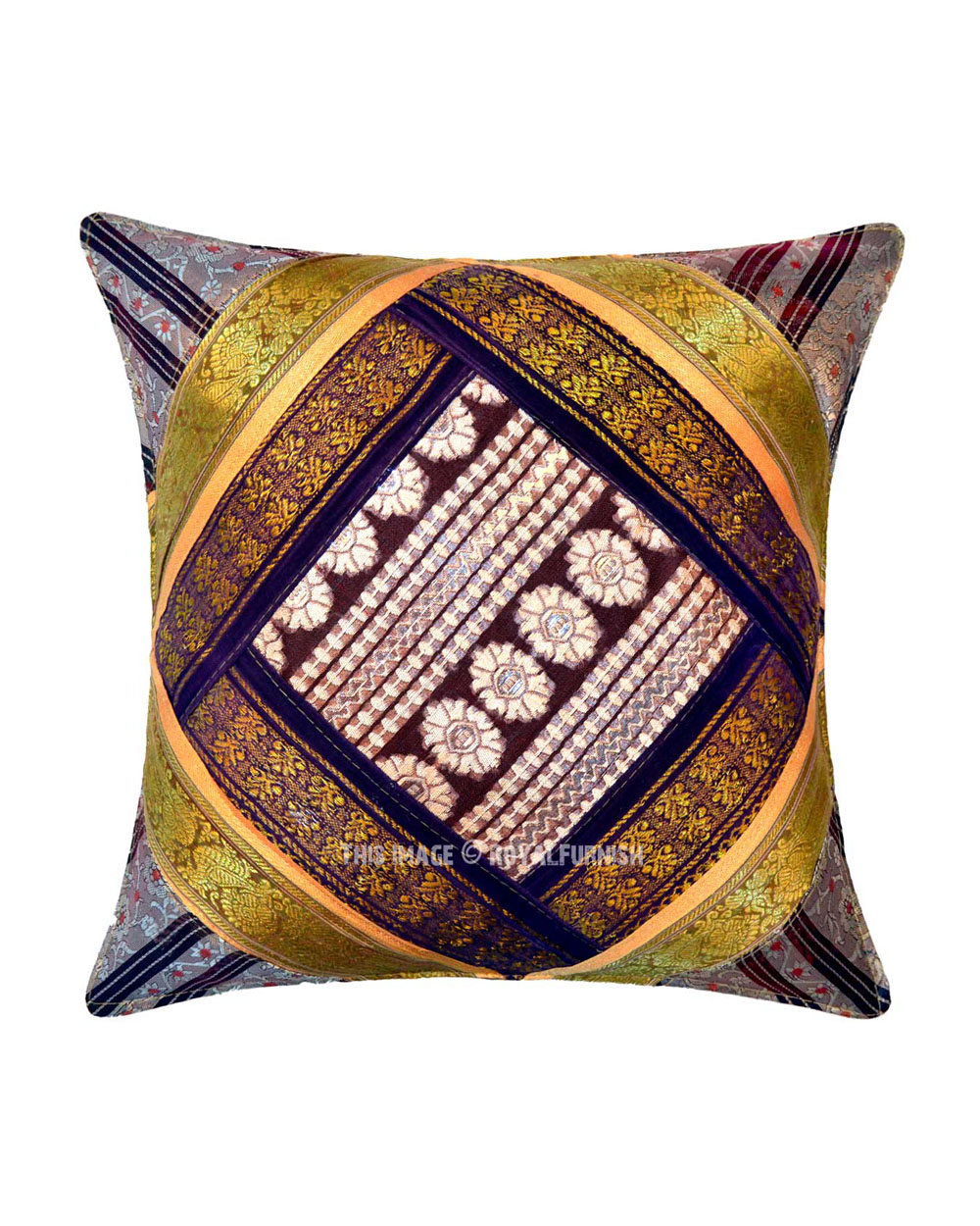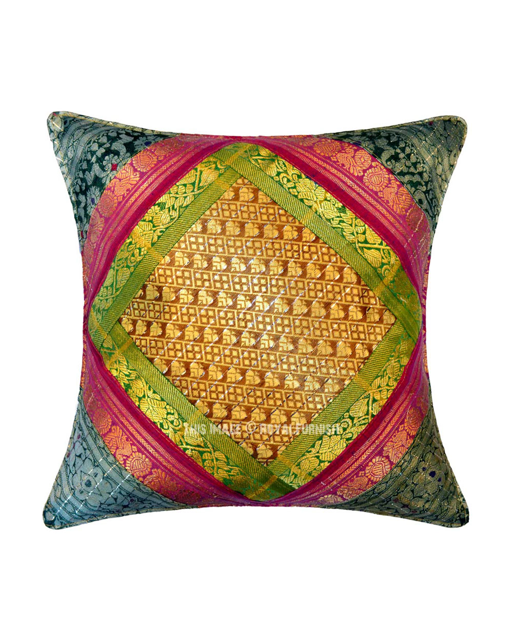 With its sleeky and shimmery surface and brocade pattern, Indian sari silk brocade pillow serves as a visual and textural expression of opulence and luxury at very cheap price. It is 100% made in India from beginning to end. The sophisticated square India silk brocade offer a perfect accent to your home furniture chair, sofa, bed. The Silk brocade pillow completes the warm look of the bedding.