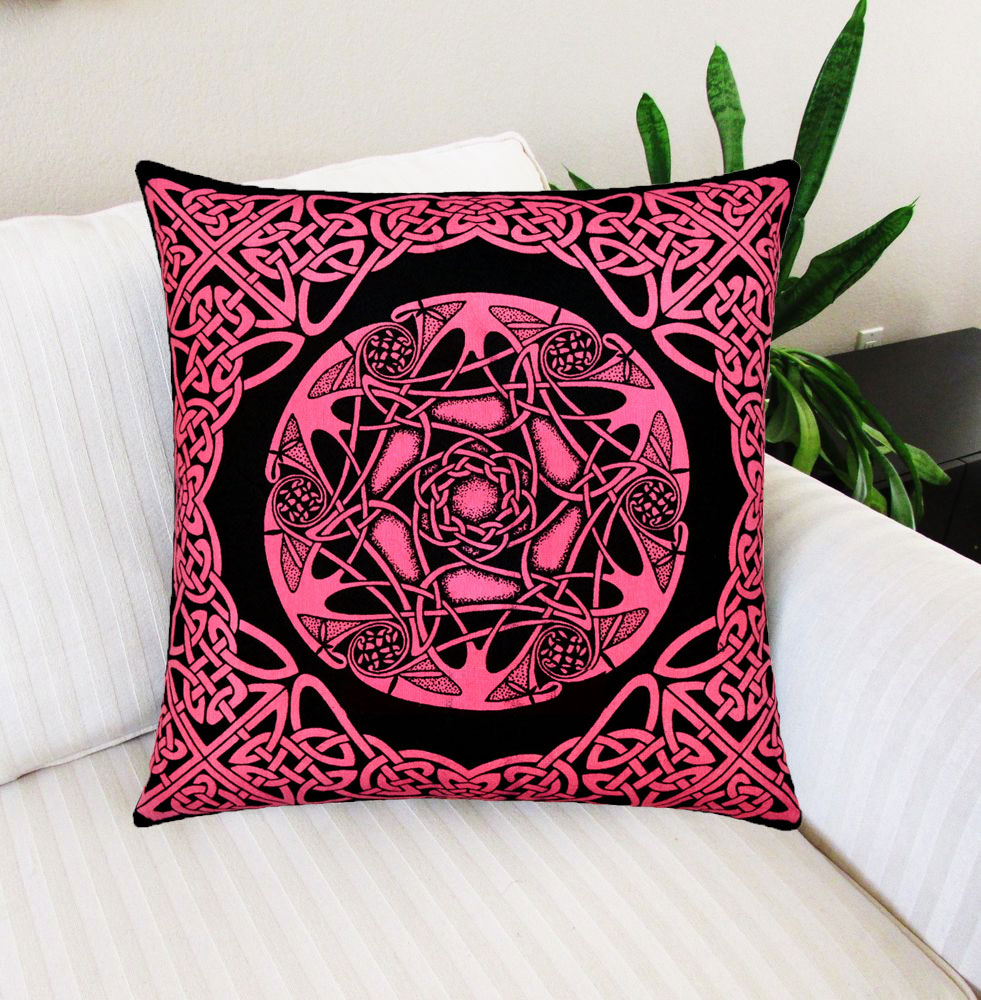 Handcrafted hippie tie dye throw pillow cover made from 100% cotton fabric, a stylish statement that will accent any room. Individually cut and sewn by hand, the pillow cover measures 16X16, features Celtic knot on one side and other side has different color and is finished with a concealed zipper for ease of care.