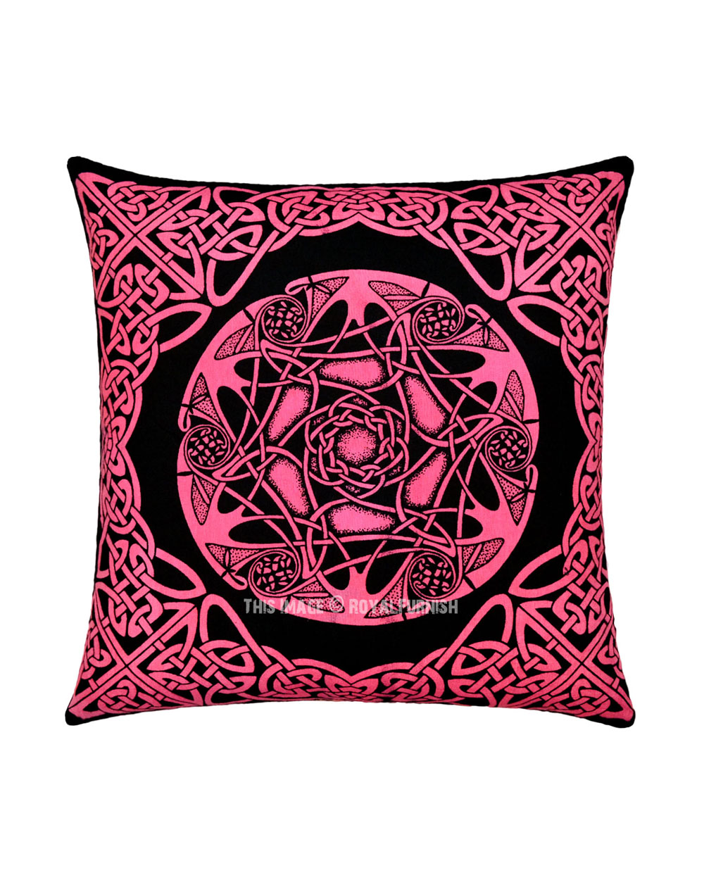 Pink Black Multi Hippie Decorative Celtic Star Knot Square Throw Pillow Cotton Tie Dye Cushion Cover 16x16