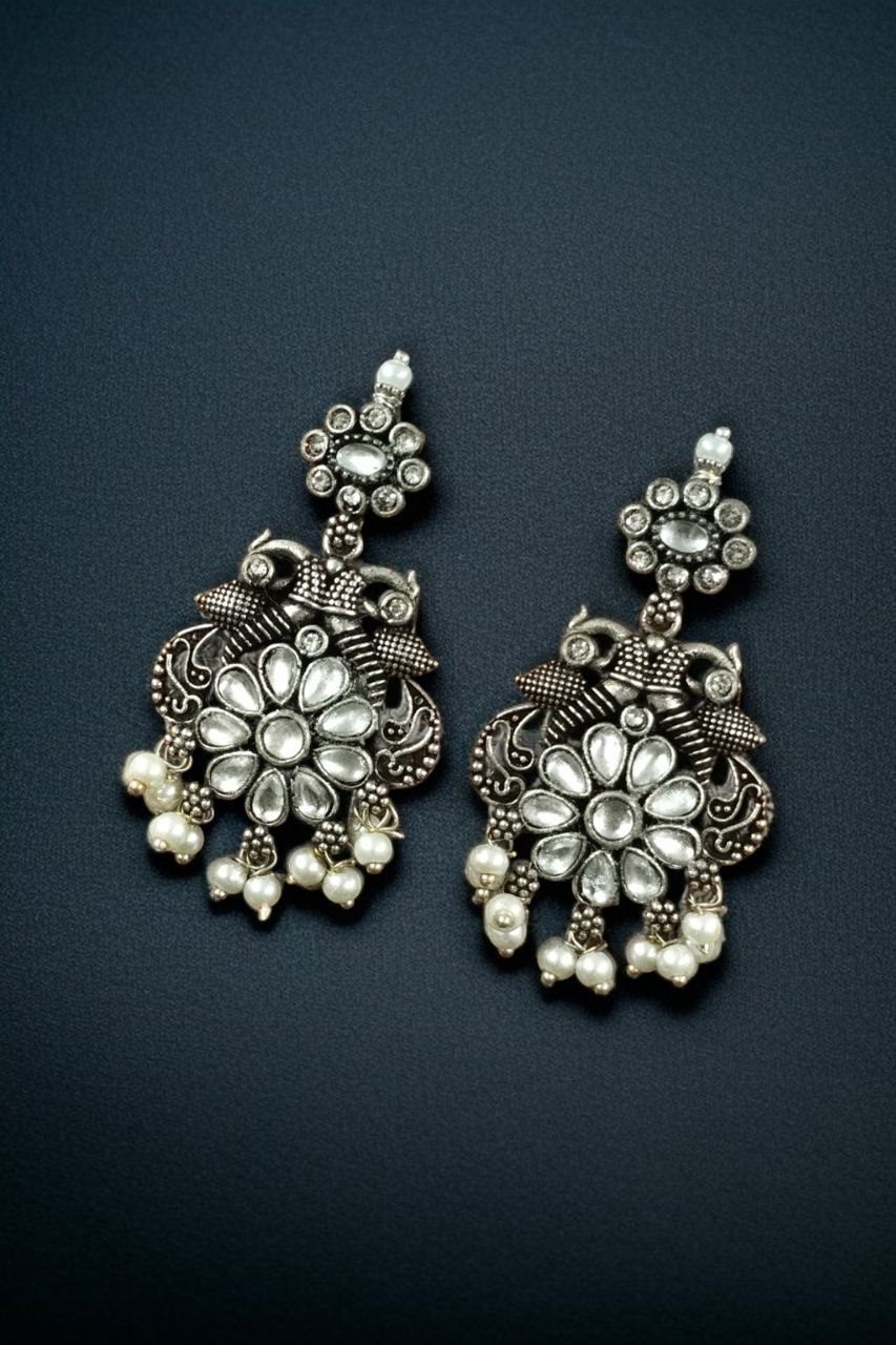 Traditional Indian Peacock Silver Plated Dangler Earring Stonework Affordable Boho Jewellery Earring