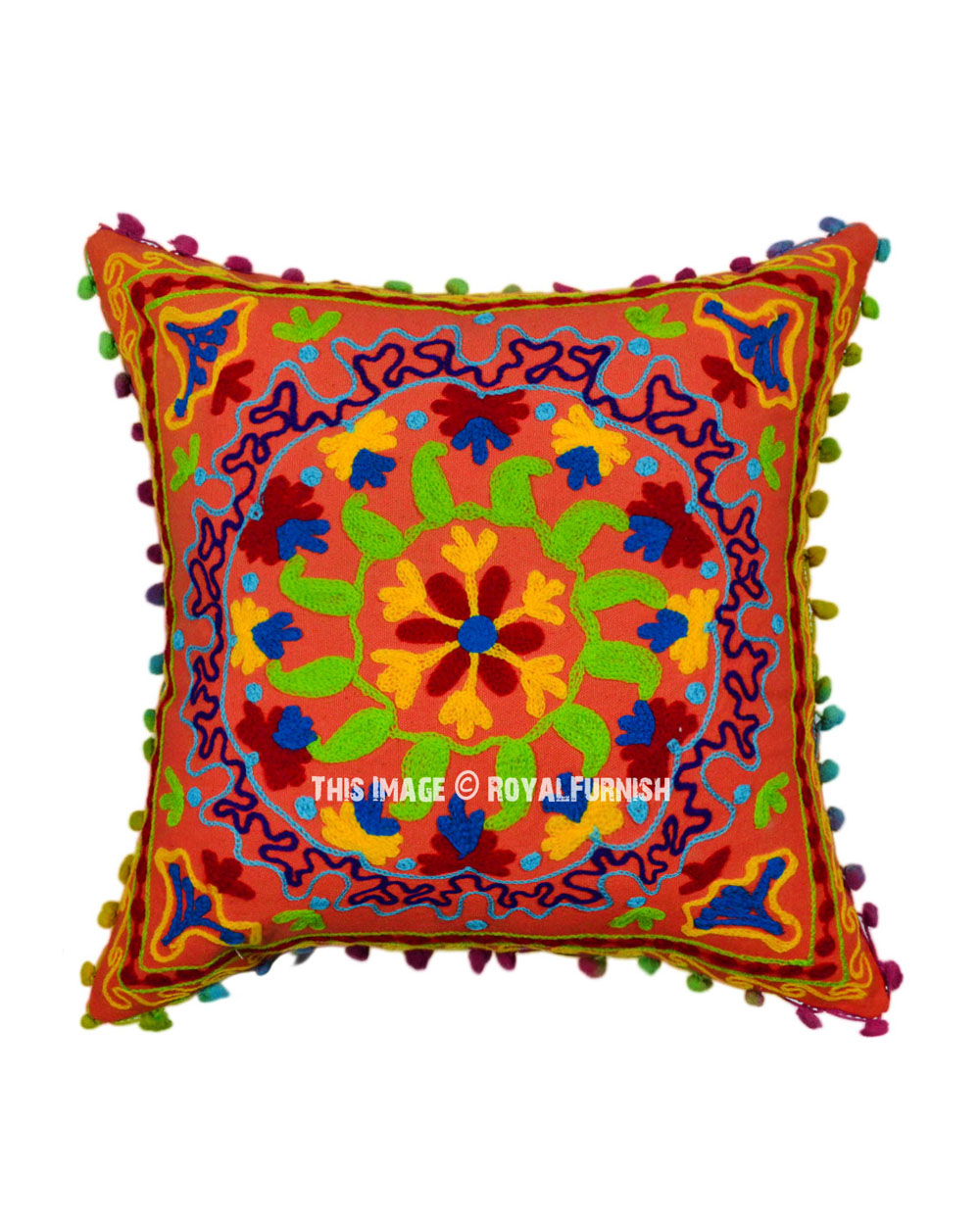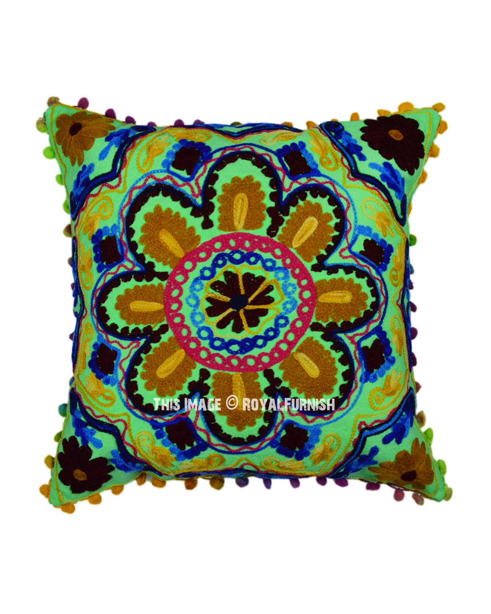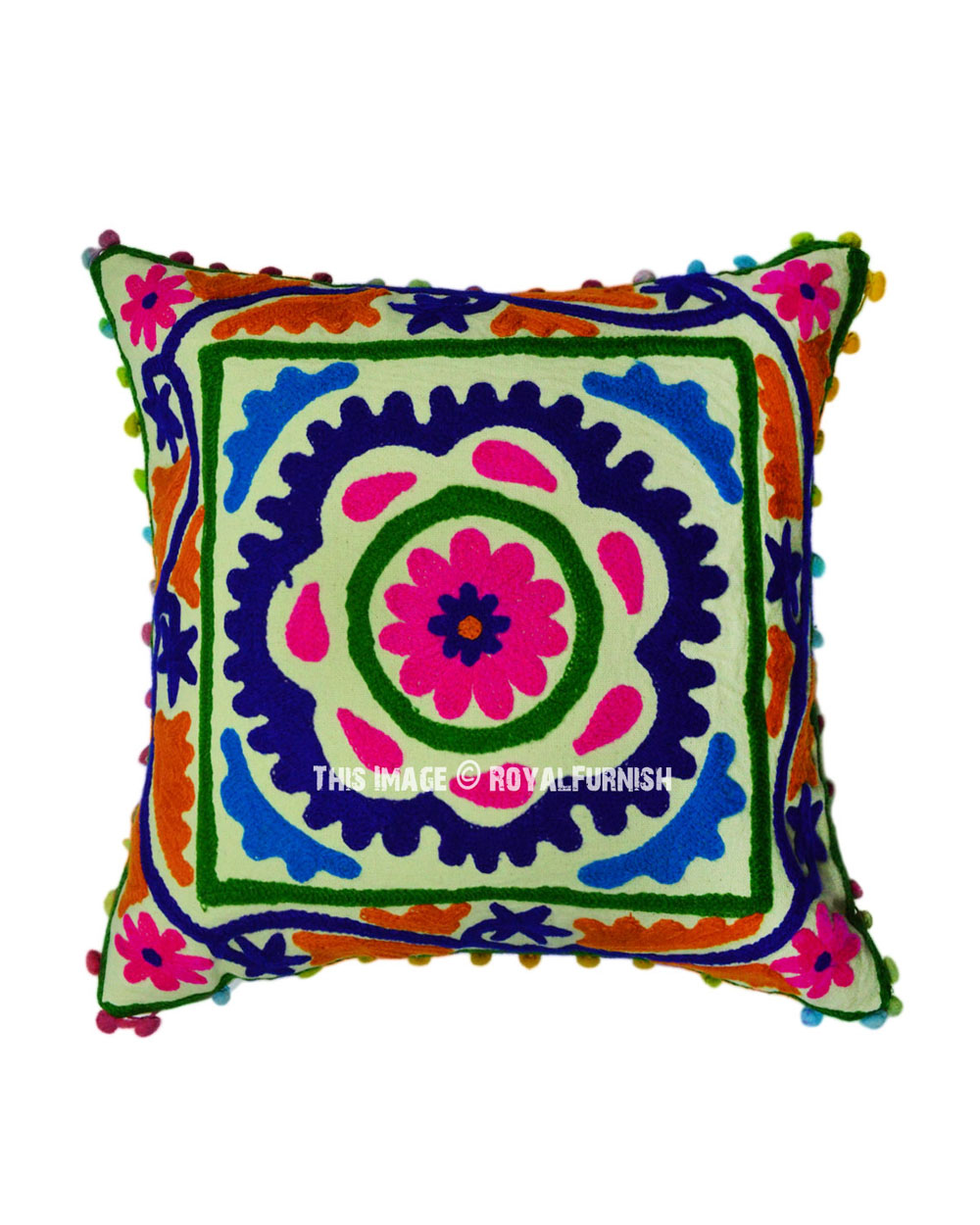 Design 1 16" Stunning Multi Colorful Suzani Handmade Embroidered Square Gypsy Decorative Throw Pillow Cover