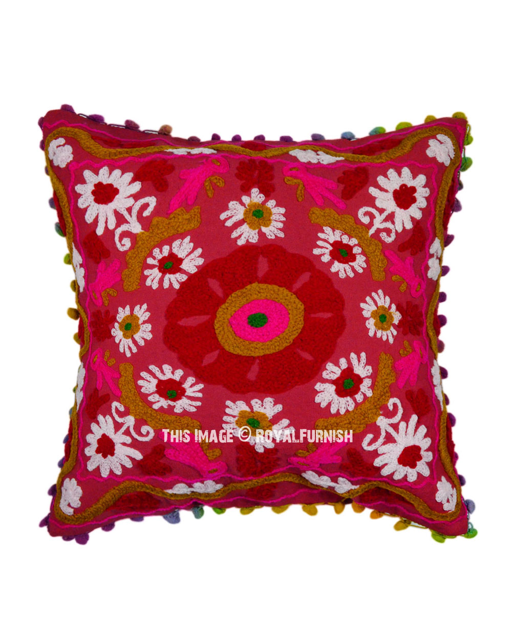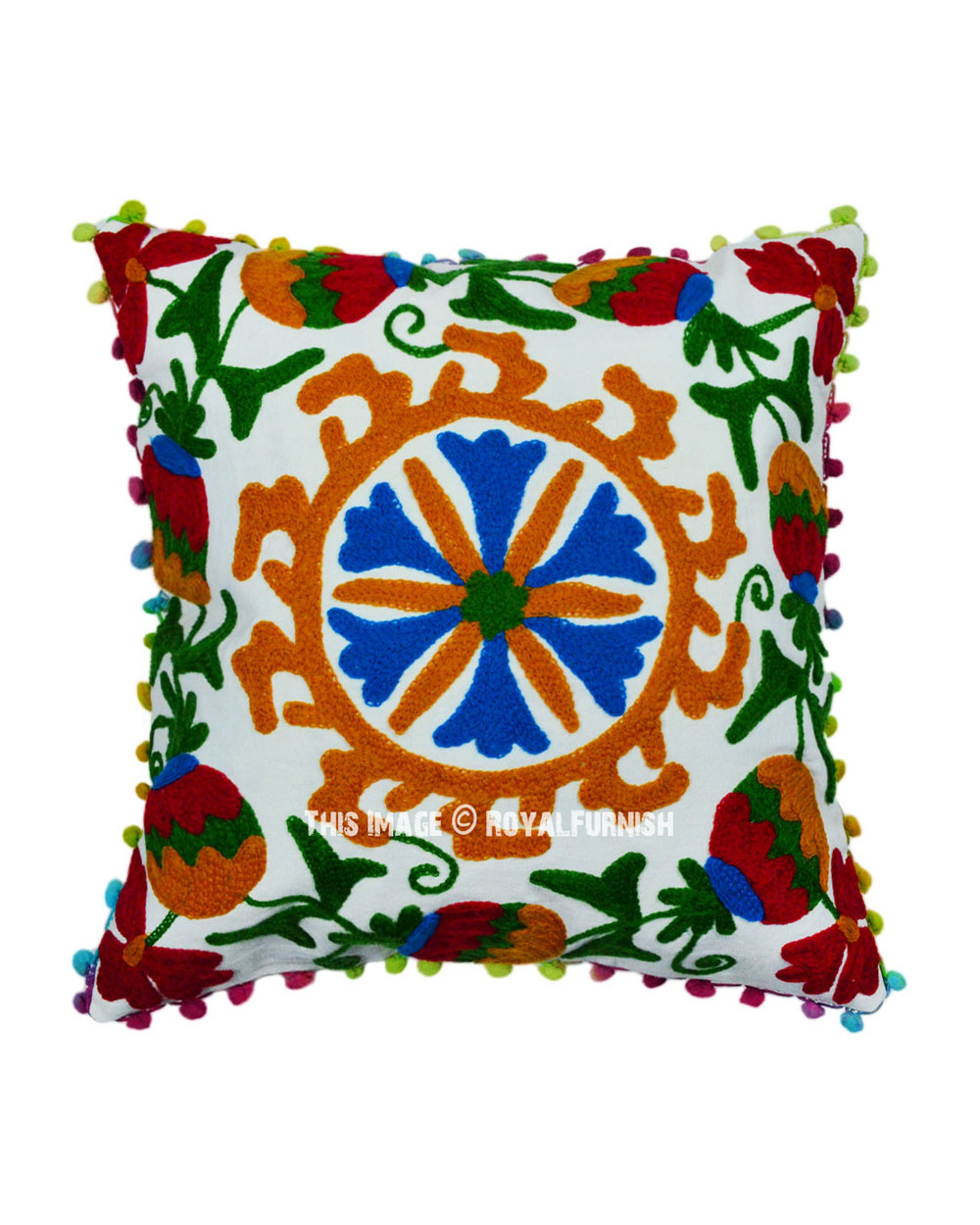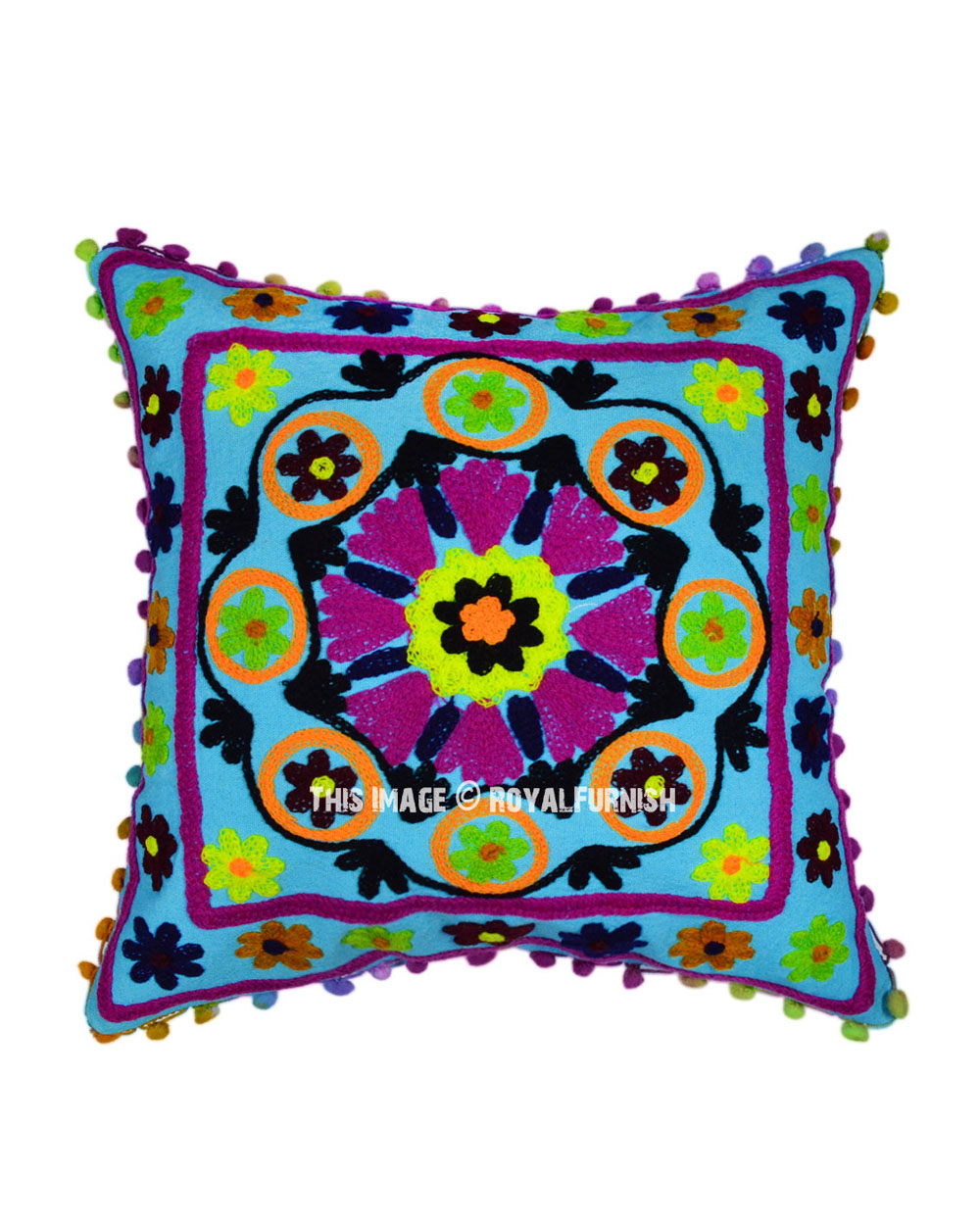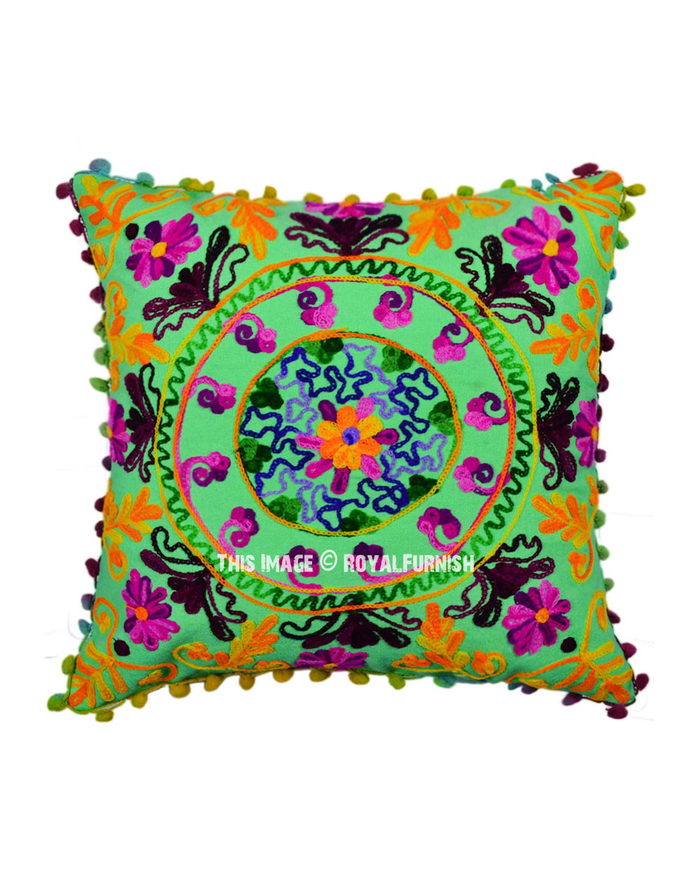 Design 1 16" Stunning Multi Colorful Suzani Handmade Embroidered Square Gypsy Decorative Throw Pillow Cover