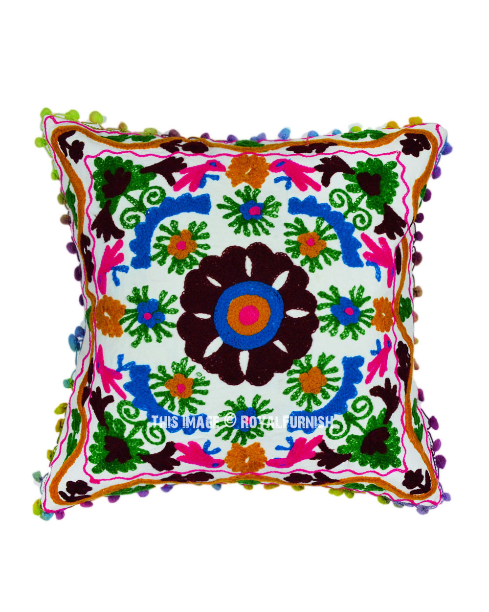 Design 8 16" Stunning Multi Colorful Suzani Handmade Embroidered Square Gypsy Decorative Throw Pillow Cover