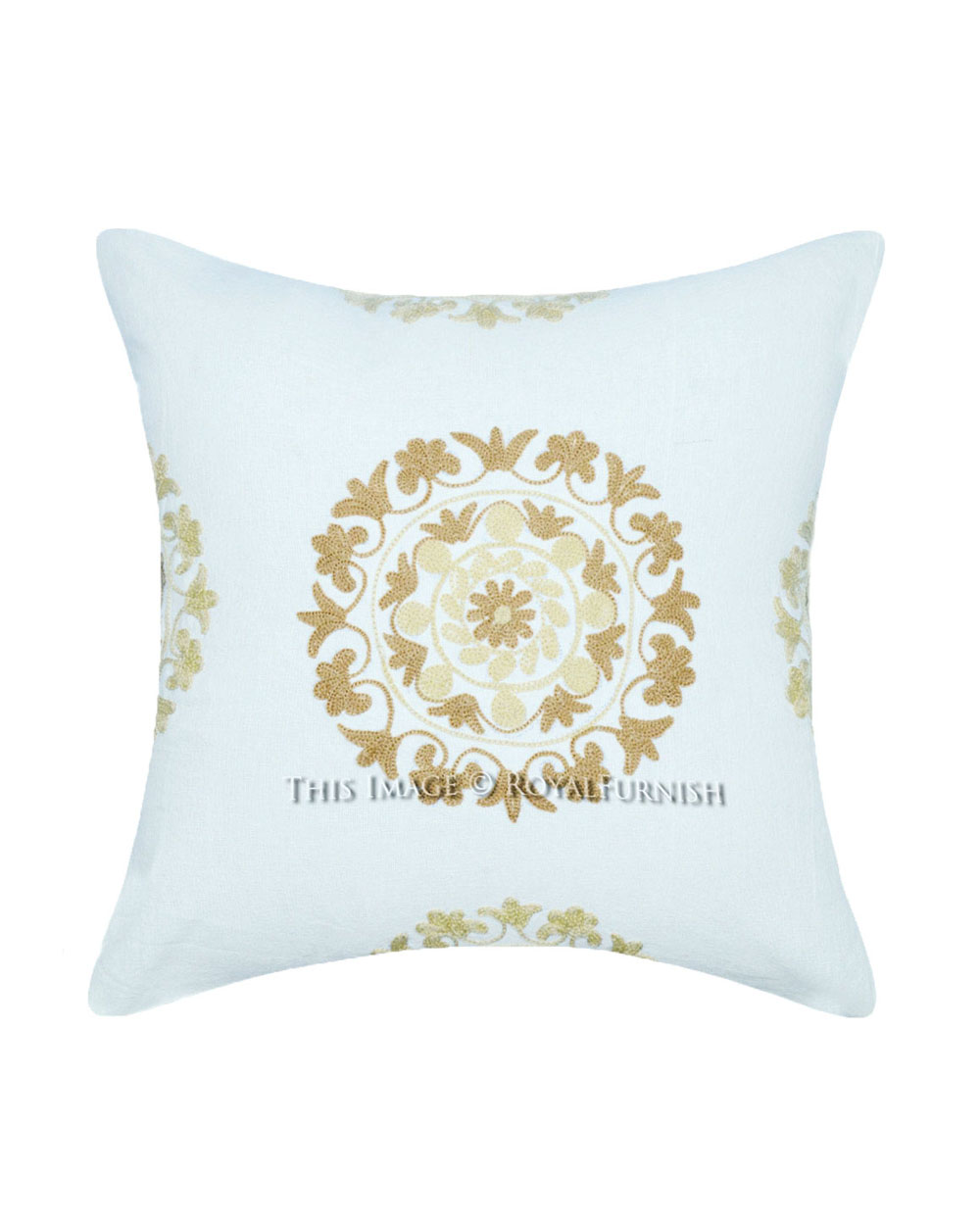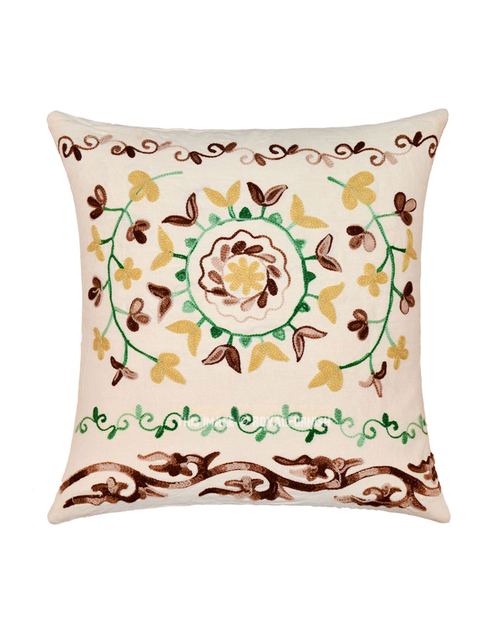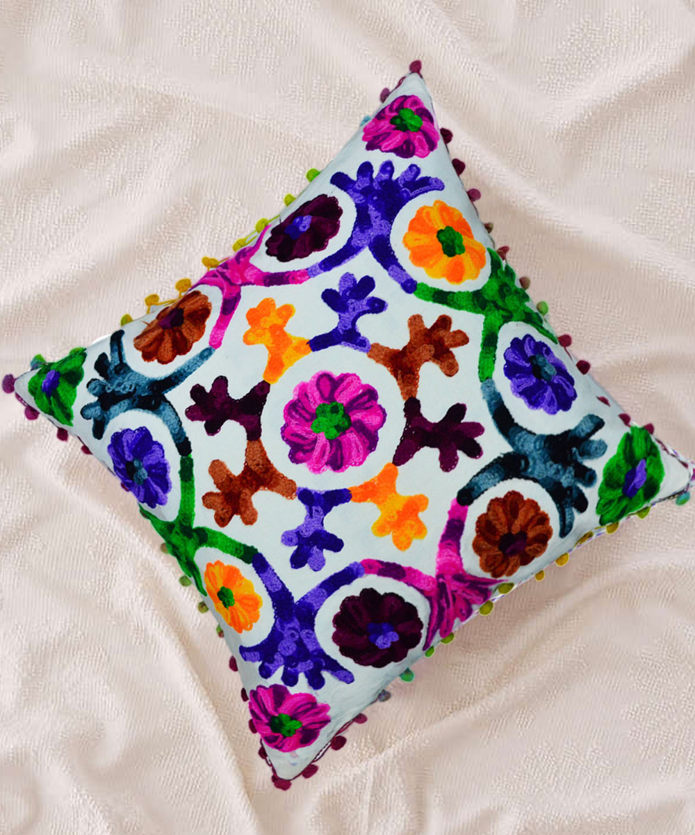 Allow your room to turn into a beautiful, extravagant space of the castle with the elegant and stylish Suzani pillow cover with round circle motifs. It is intricate thread work and famous art which can easily mix matched with much living room furniture. Raised thread embroidery is soft to the skin and elegant to the viewer. Dense embroidery looks conventional with innovative pattern of suzani designs. It is attractive minimalist design manages to catch the eye on the onlooker and demands attention.