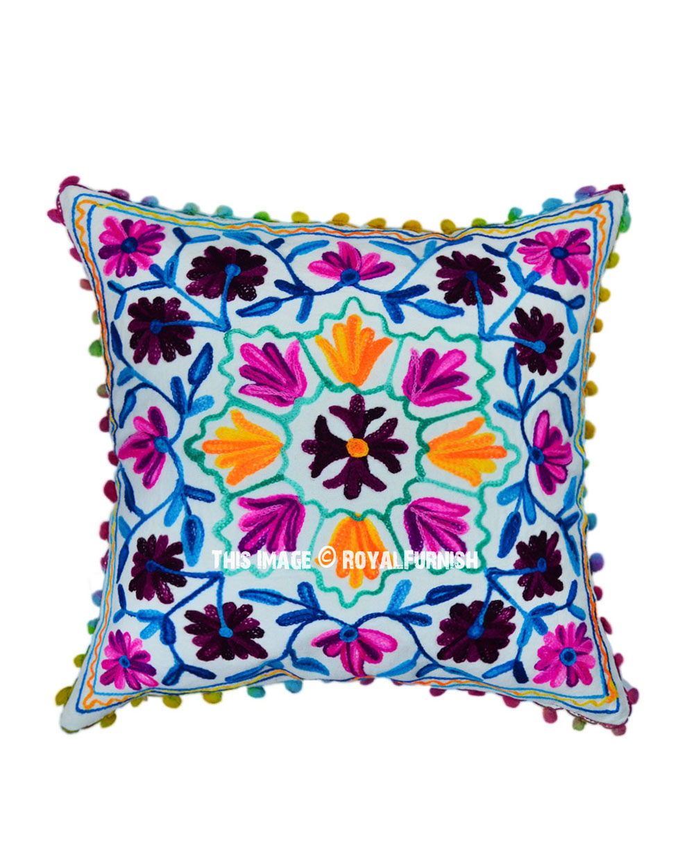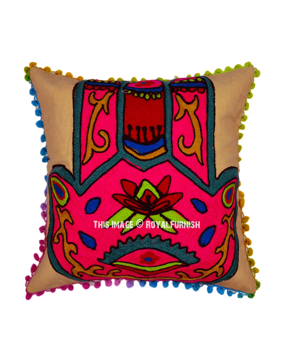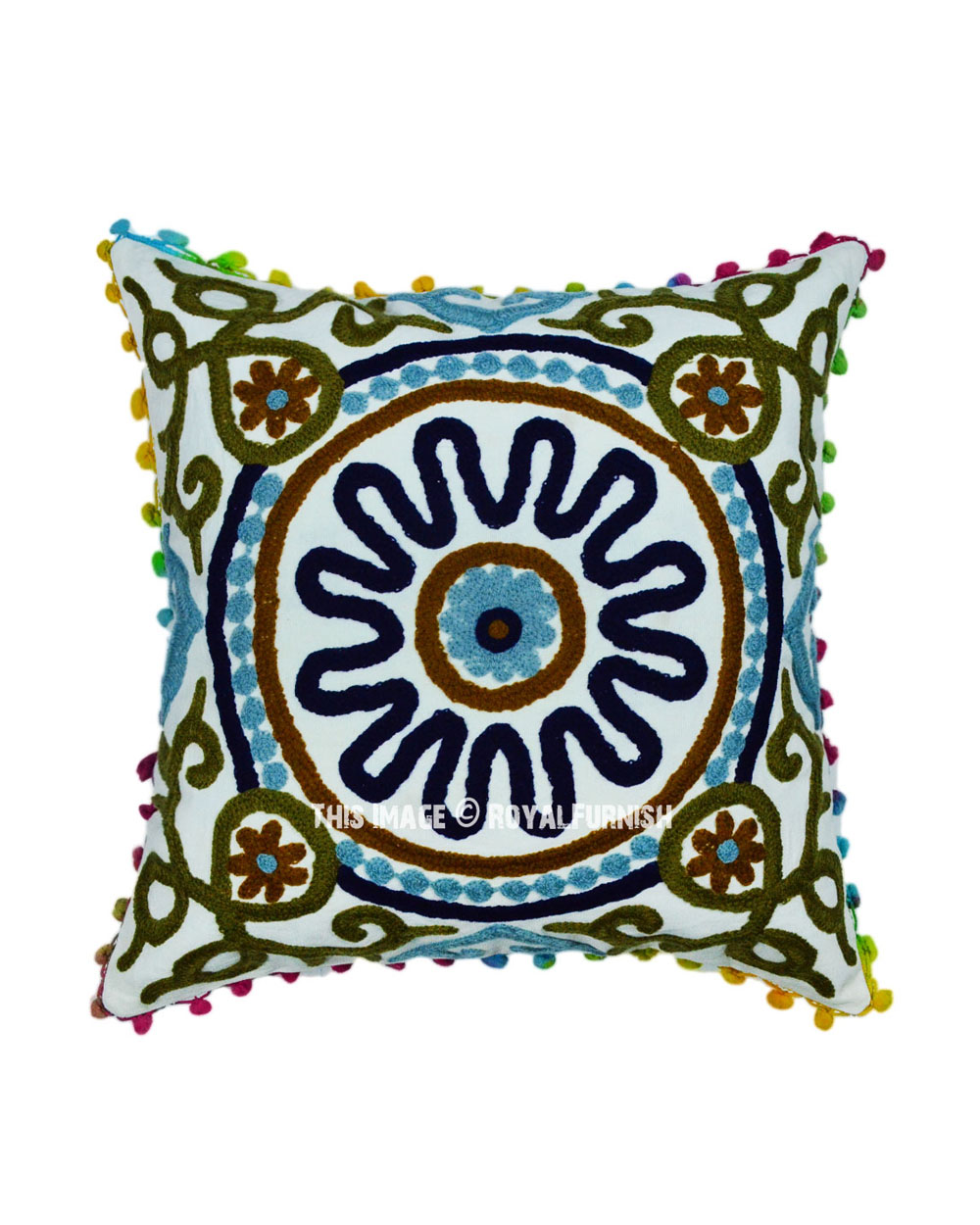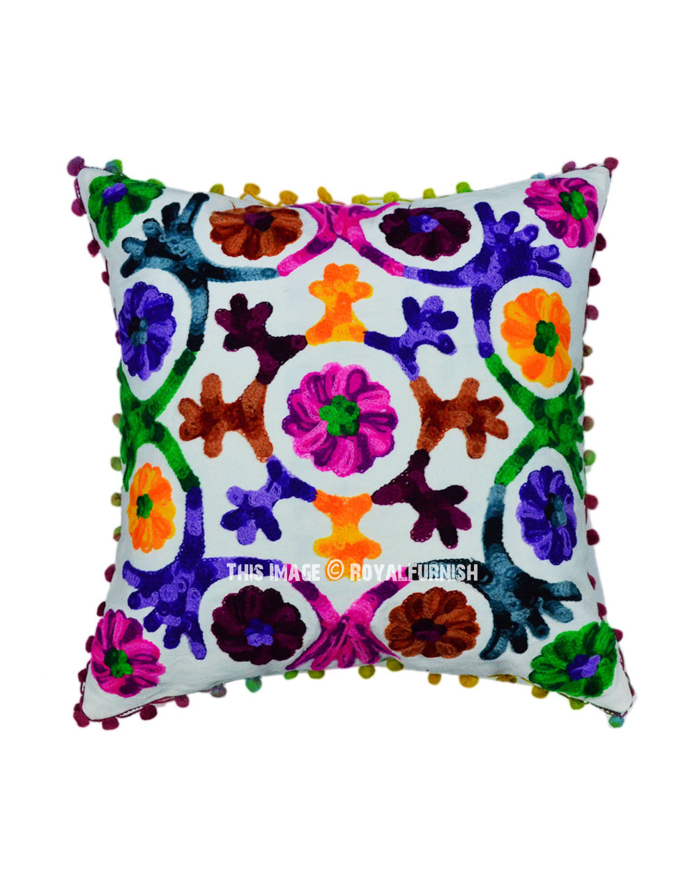 Design 8 16" Bohemian Multi Colorful Suzani Handmade Embroidered Square Decorative Throw Pillow Cover