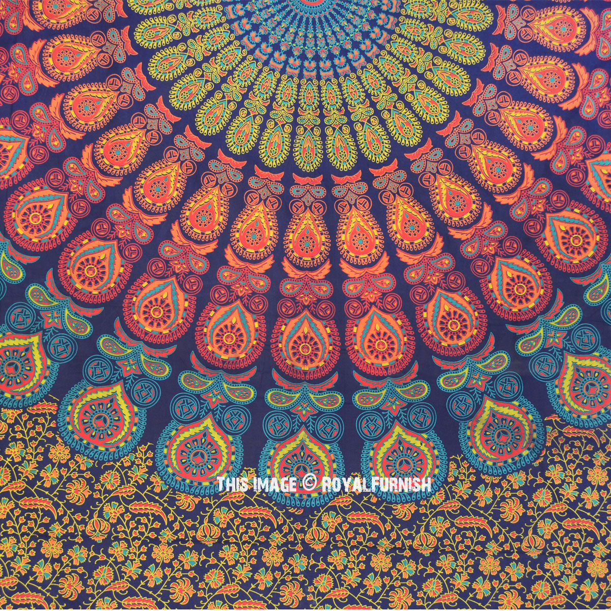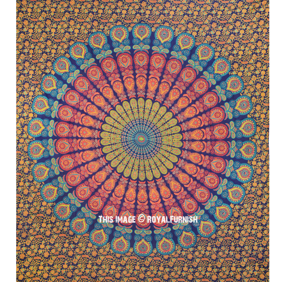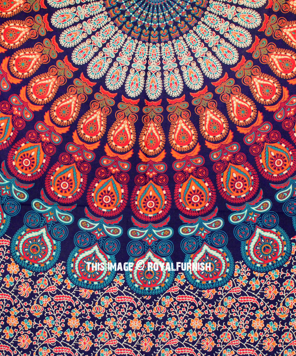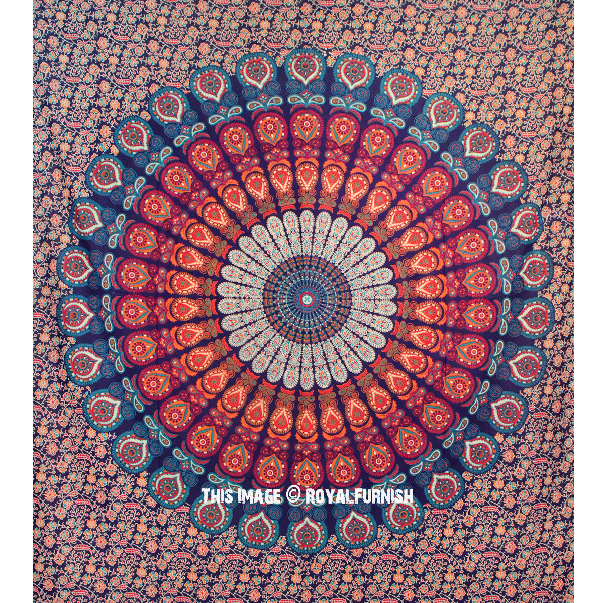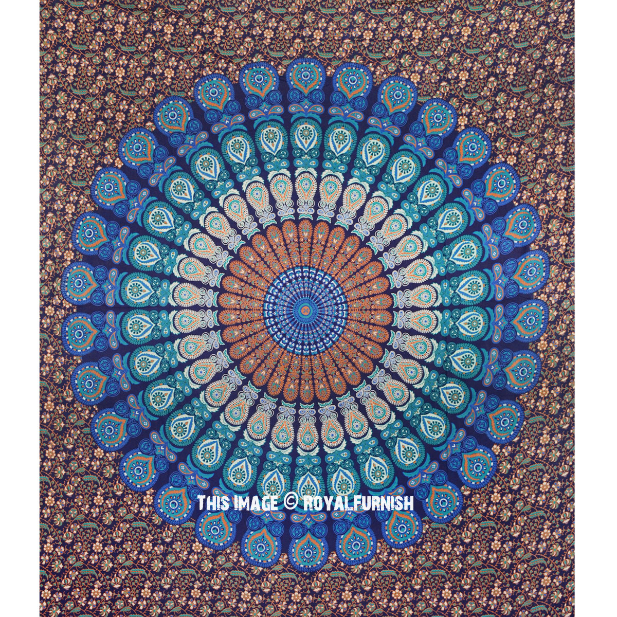 Blue Indian Boho Peacock Mandala Wall Hanging Plum & Bow Medallion Wall Tapestry