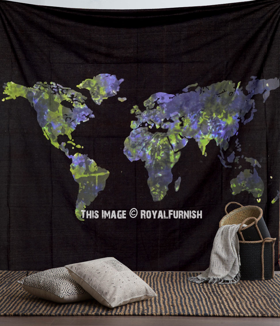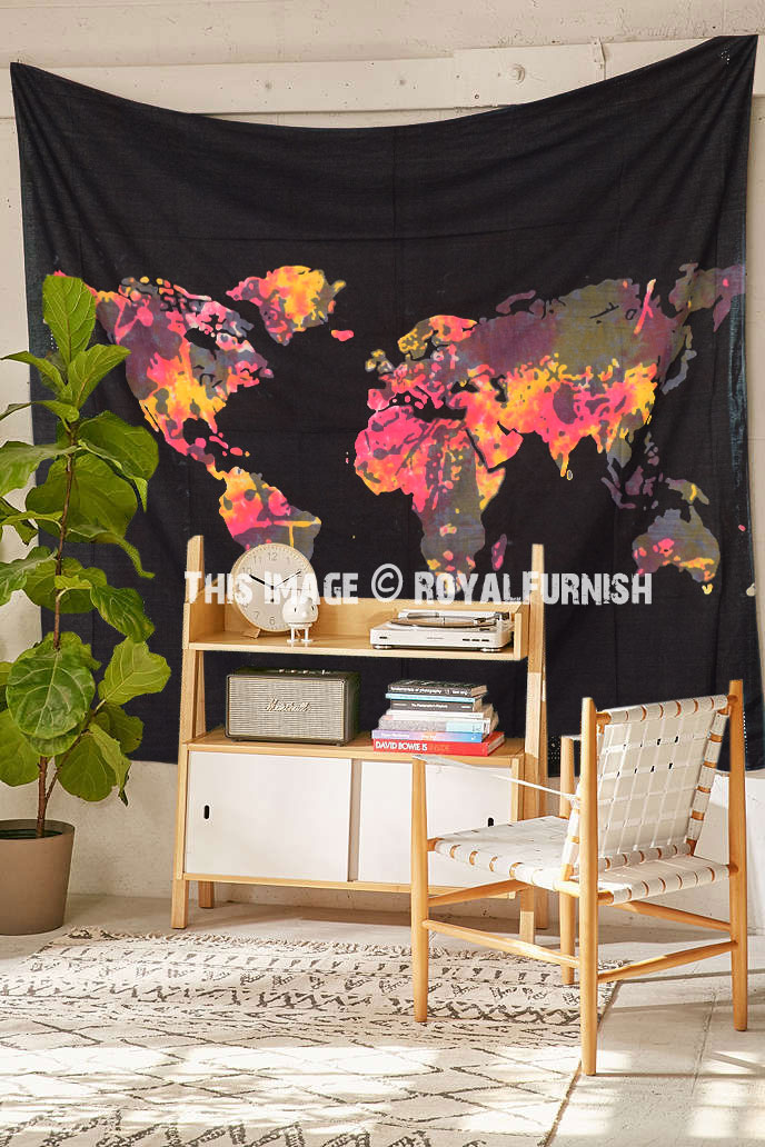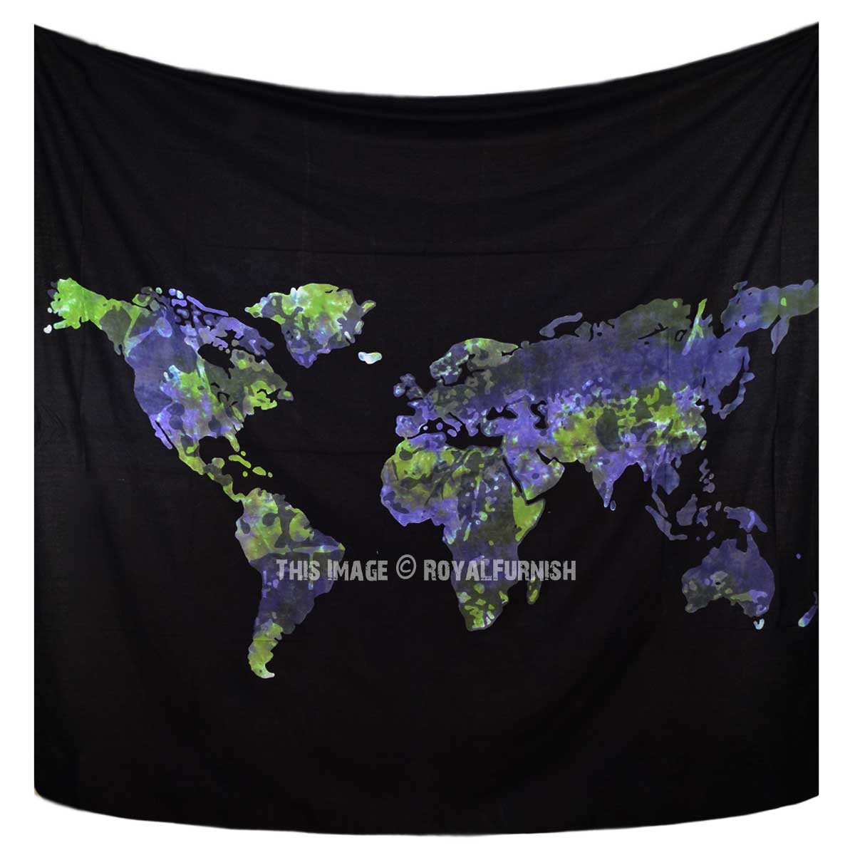 Large Black Multi World Map Wall Tapestry Tie Dye Hippie Atlas Wall Hanging