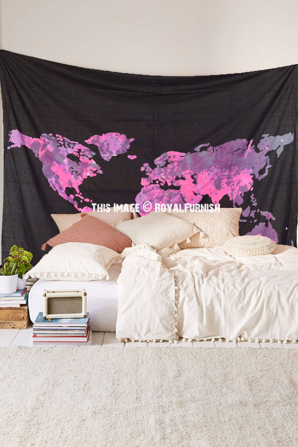 Pink Large Black Multi World Map Wall Tapestry Tie Dye Hippie Atlas Wall Hanging
