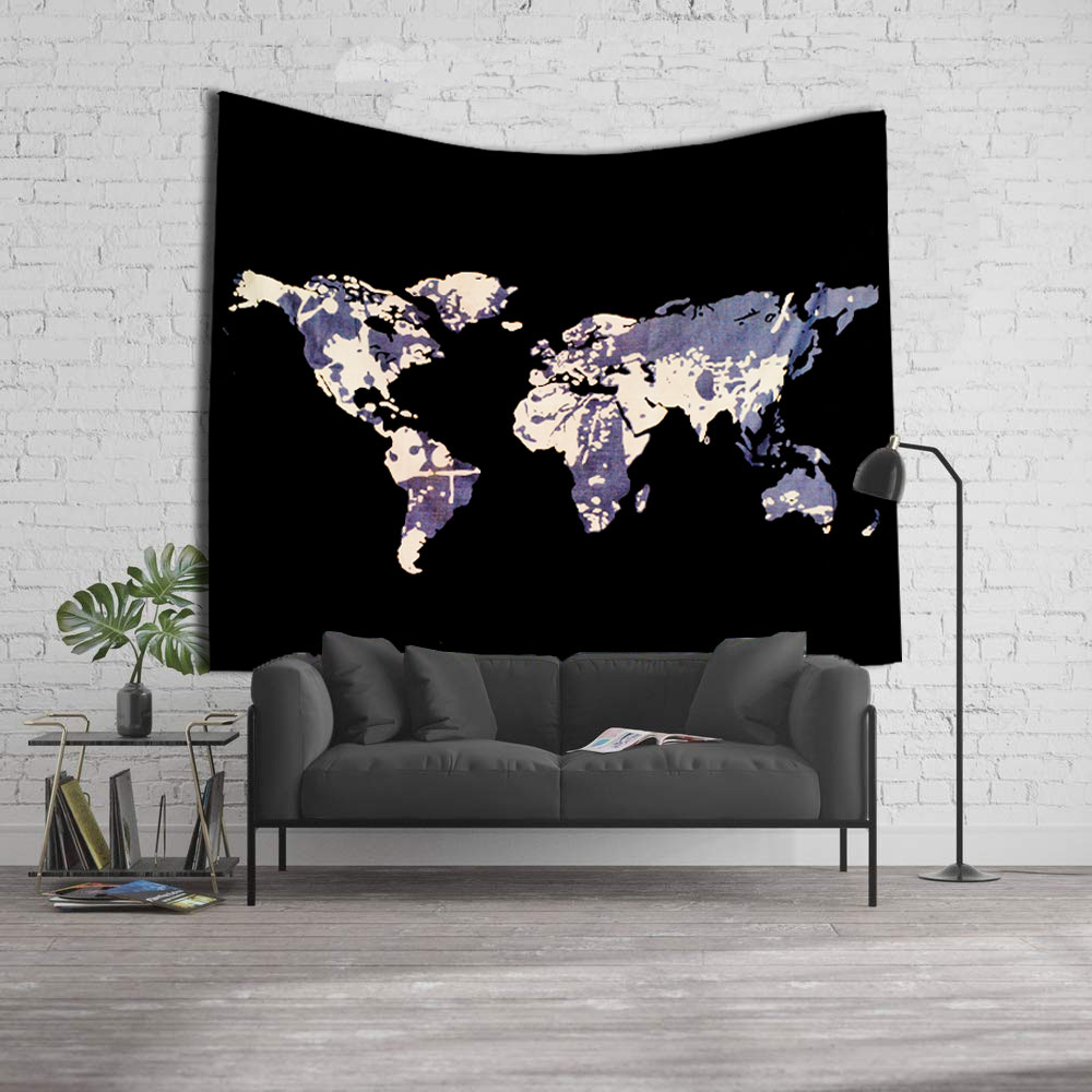 Blue Large Black Multi World Map Wall Tapestry Tie Dye Hippie Atlas Wall Hanging