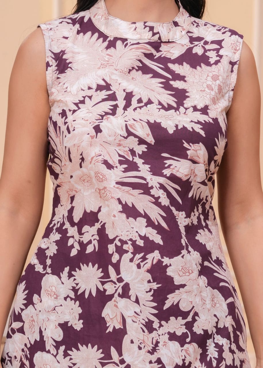 Wine Floral Printed Cotton Kurti Pant Co Ord Set Sleeveless Salwar Kameez For Women - Set Of 2