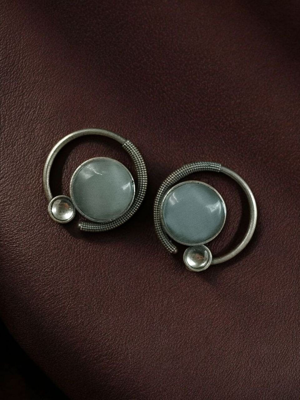 Aqua Stunning Round Monalisa Stone Stud Rustic Silver Oxidised Earring Gypsy Earrings Jewellery for Girls