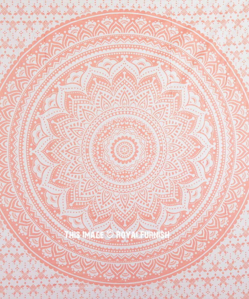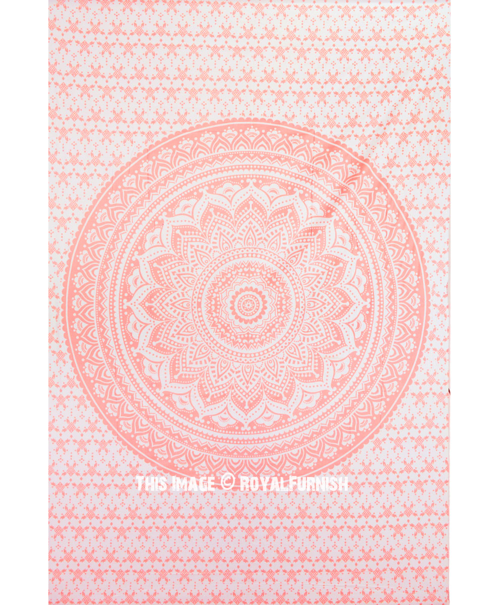 Sparkling Pink Gold Ombre Mandala Bohemian Wall Tapestry Twin Size Wall Hanging for Home Decor