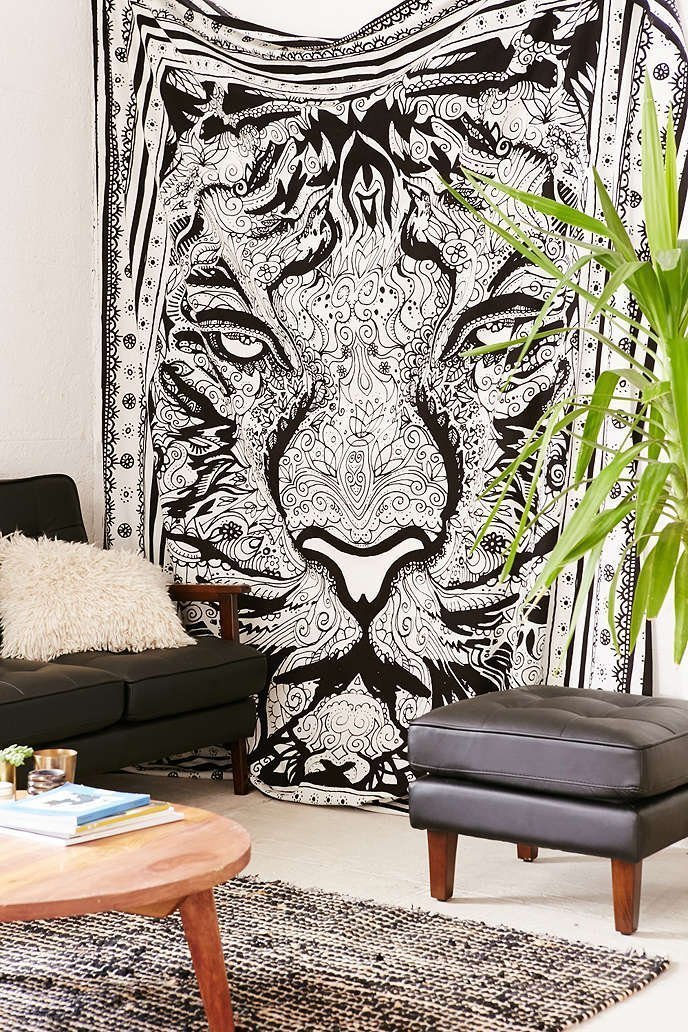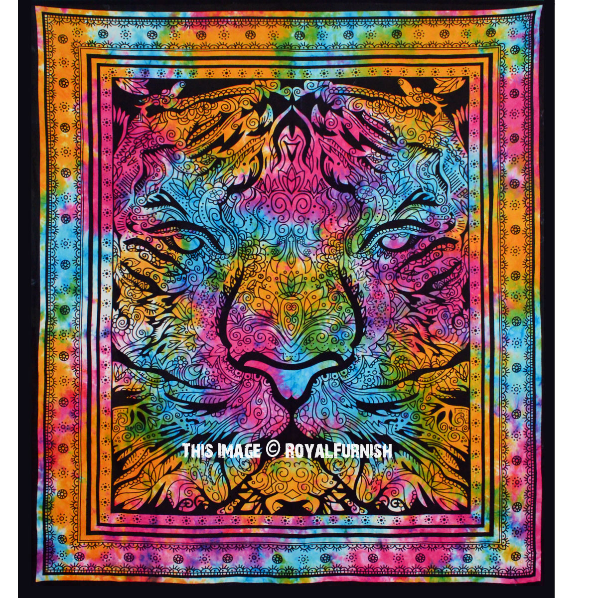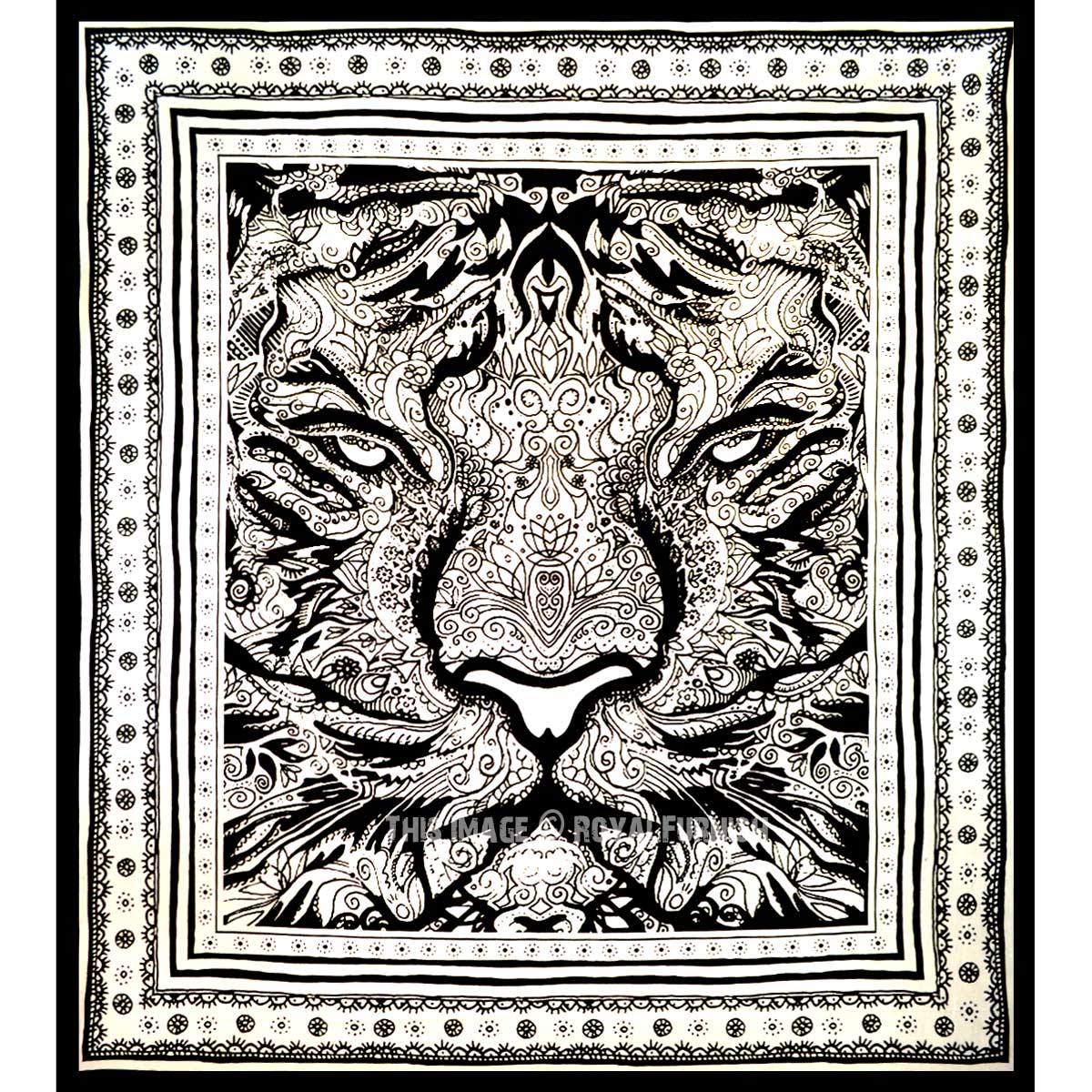 Add soft cotton hand sketched tiger face tapestry to give bohemian charm to room interior. Made in India, 100% cotton tapestry is finished with border. A perfect piece to decorate room, bedroom, dorm room and an event.