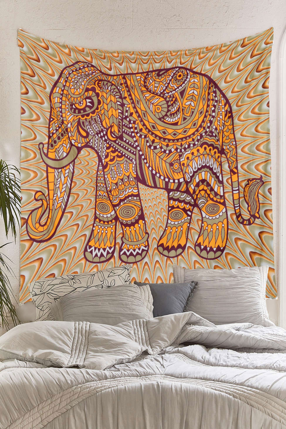 Express your artistic flair by hanging this bohemian art featuring elephant tapestry as your wall's centerpiece. This cotton tapestry features hemmed edges for a finished and put-together look. Featuring vivid colors this highly unique and versatile tapestry is durable enough for both indoor and outdoor use. Machine washable for outdoor enthusiasts, with cold water on gentle cycle using mild detergent - tumble dry with low heat.