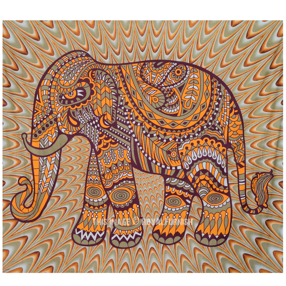 Yellow Maroon Hippie Psychedelic Illusion Wall Tapestry Trippy Colorful Elephant Tapestry Wall Hanging