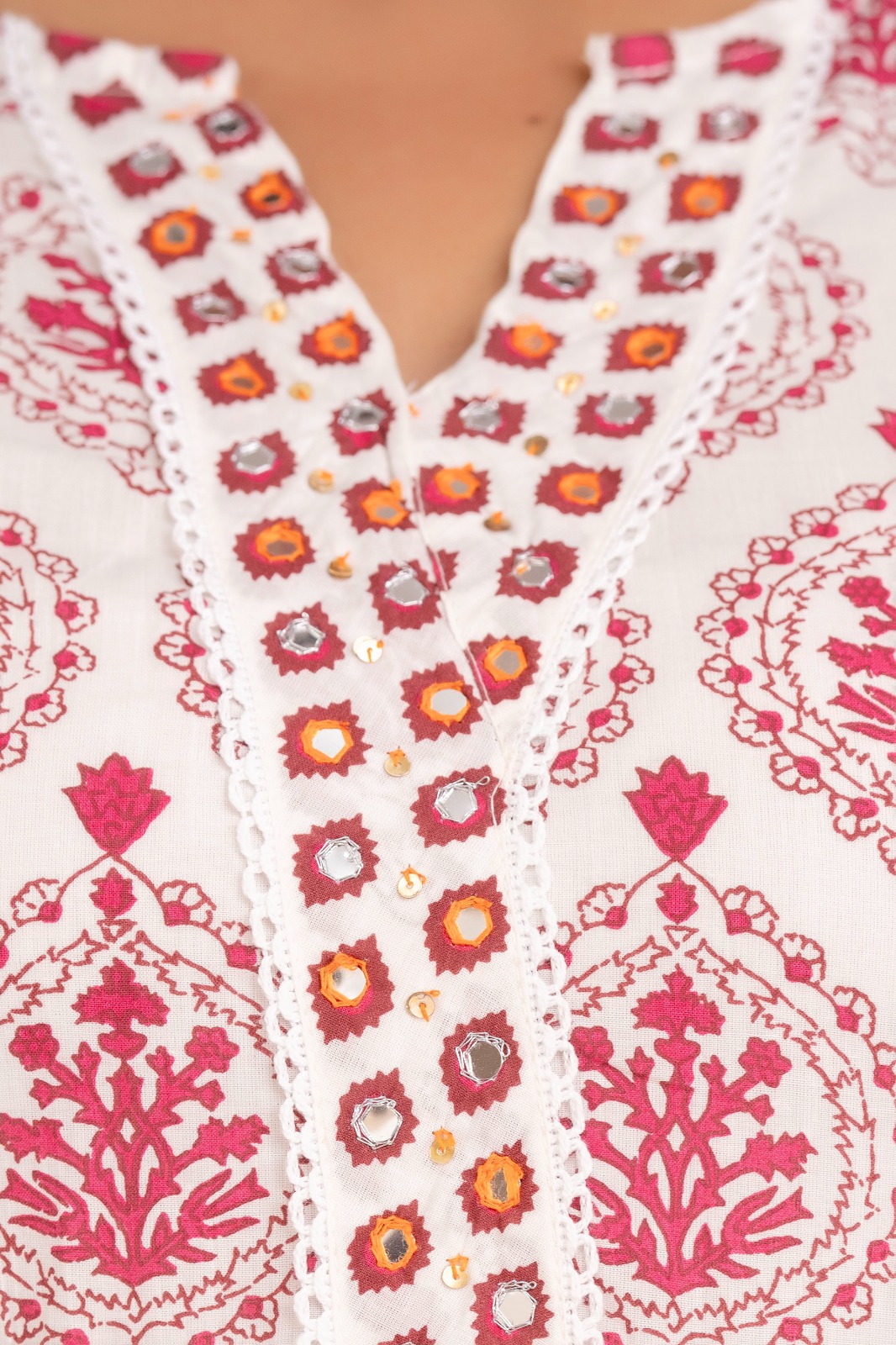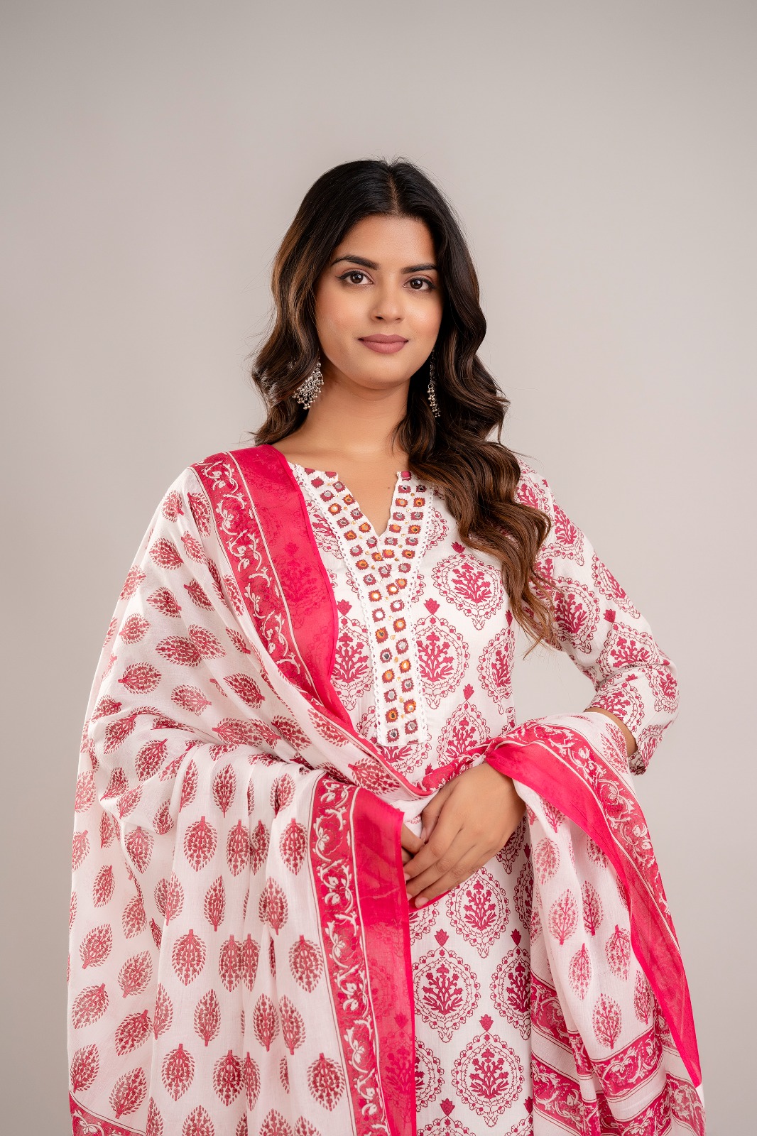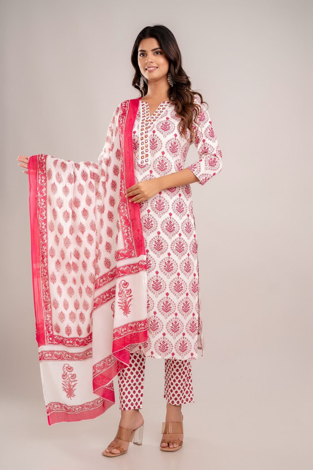Work: Floral Block Printed & Embroidery Hand Work Dress