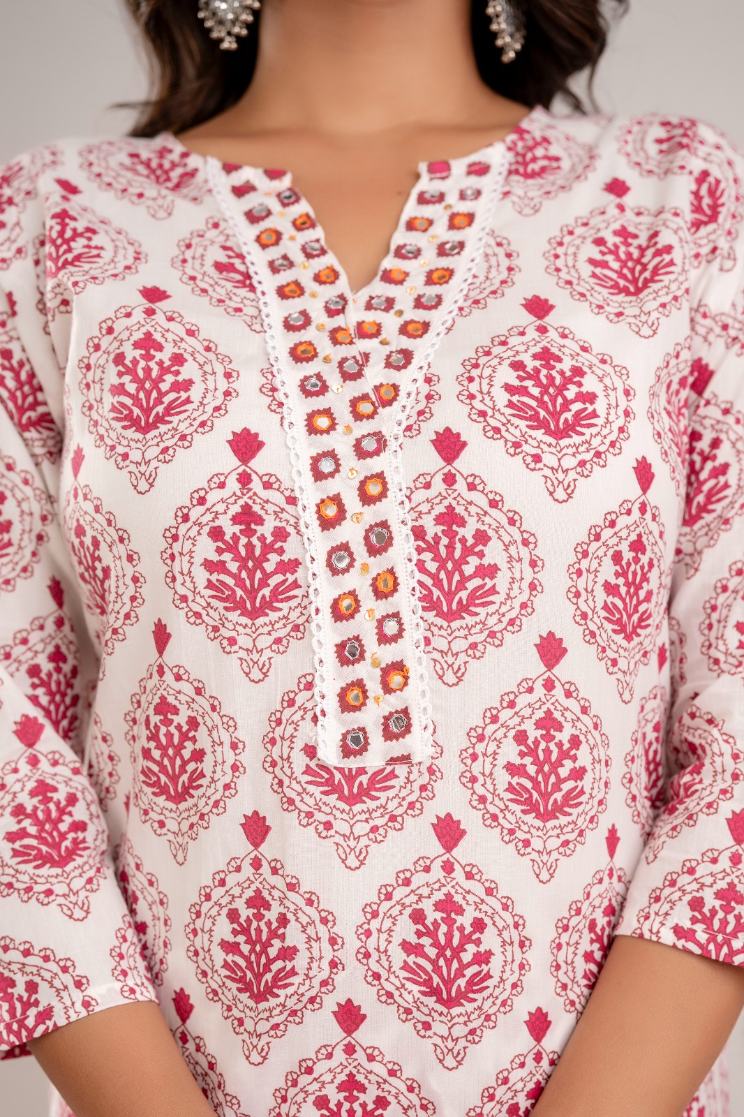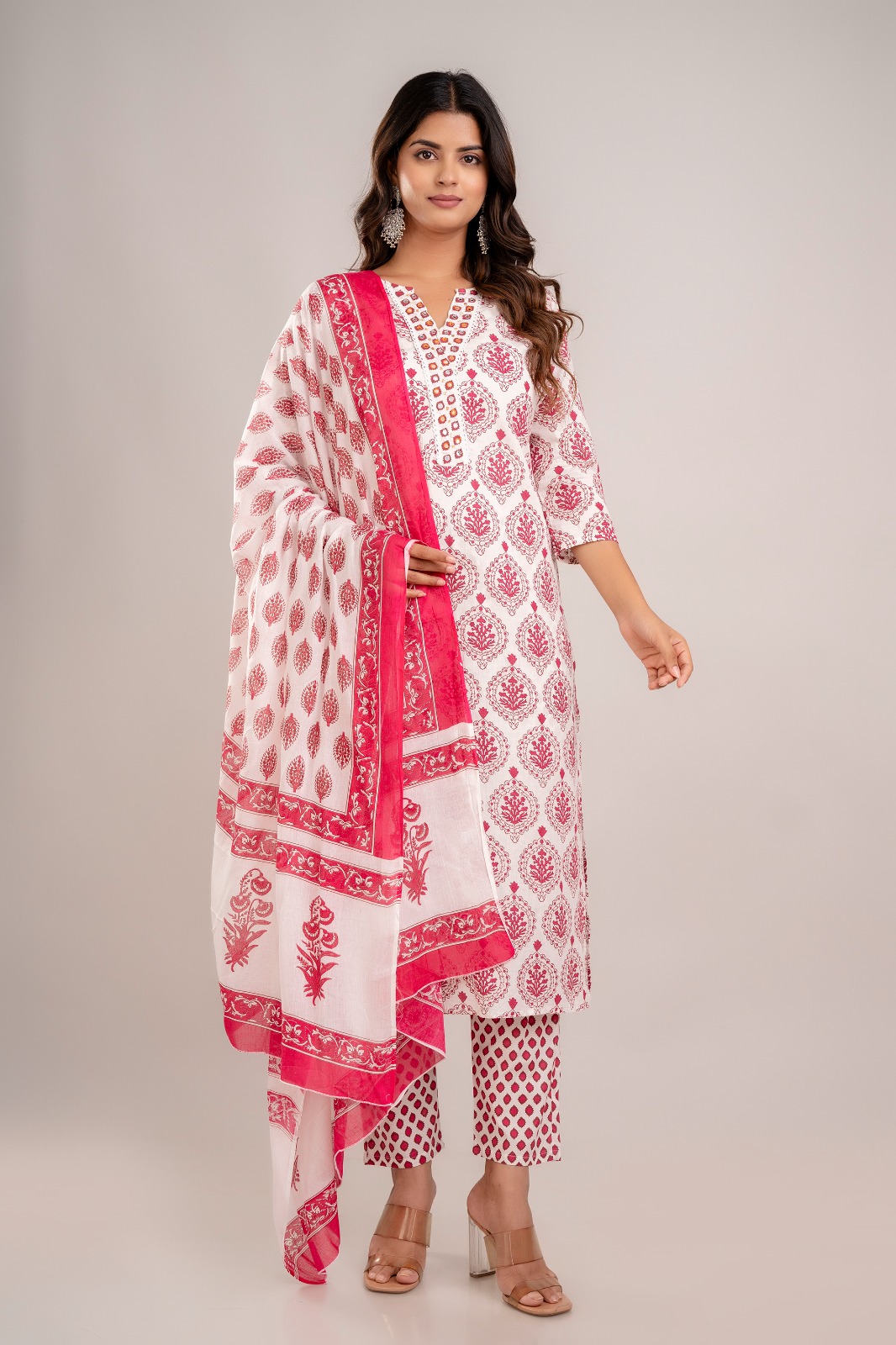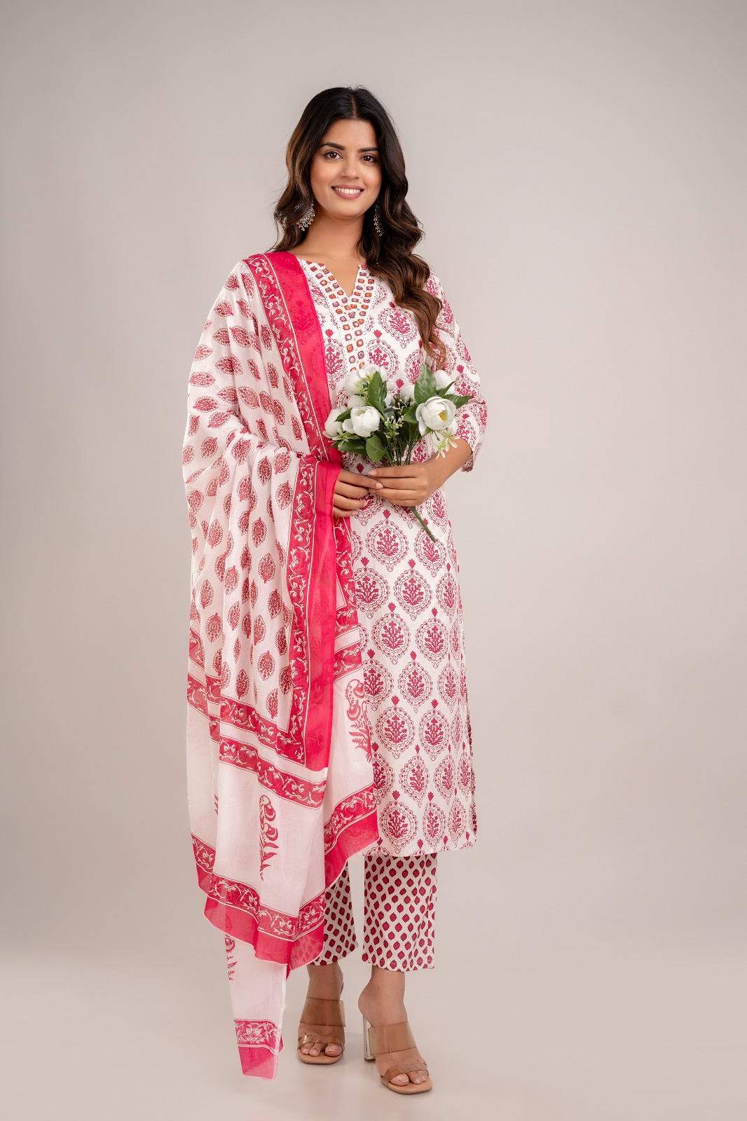 Work: Floral Block Printed & Embroidery Hand Work Dress