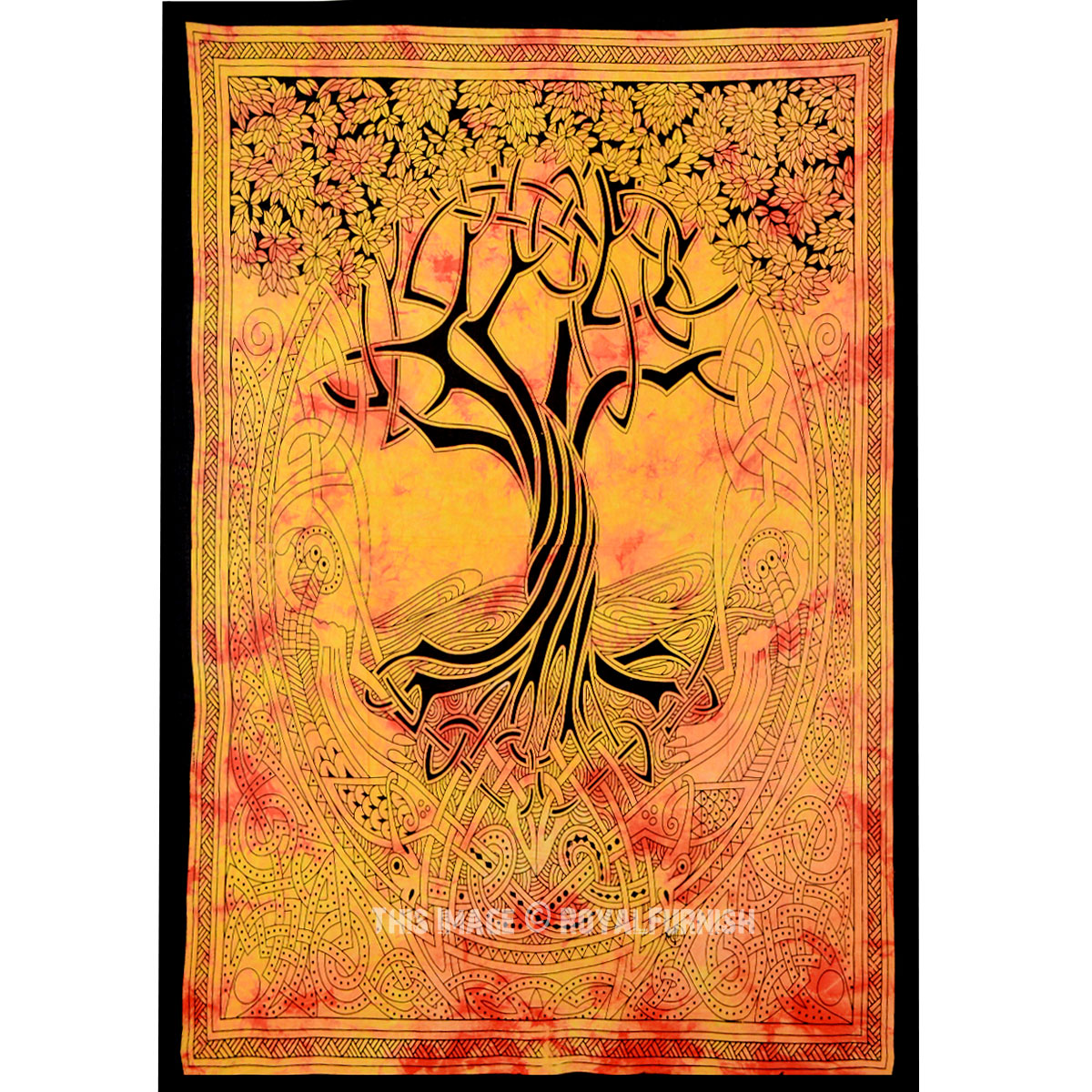 Add a distinctive touch to your bedroom space by hanging up Celtic tree of spirit's tapestry. Constructed from 100% cotton, this tapestry is high in quality, durable and skin friendly.