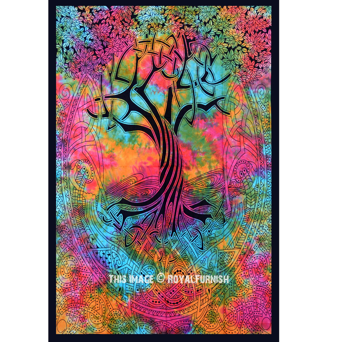Multi Tie Dye Spiritual Celtic Designer Gothic Tree of Life Tapestry Mystical Wall Hanging Aesthetic Decor