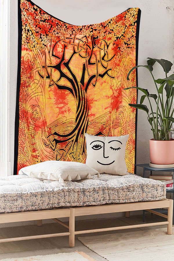 Orange Spiritual Celtic Designer Gothic Tree of Life Tapestry Mystical Wall Hanging Aesthetic Decor