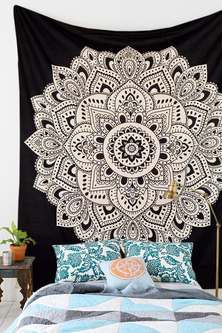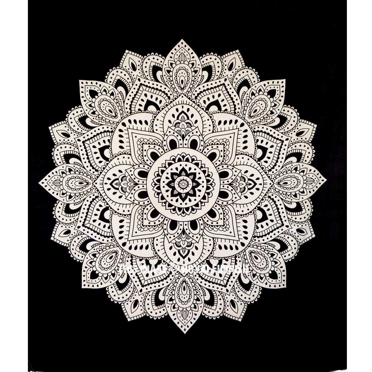 Black Hippie Lotus Mandala Tapestry Medallion Wall Hanging Cotton Bedspread Bohemian Decor