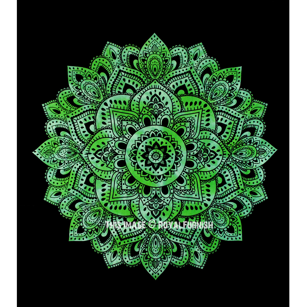 Black Green Hippie Lotus Mandala Tapestry Medallion Wall Hanging Cotton Bedspread Bohemian Decor