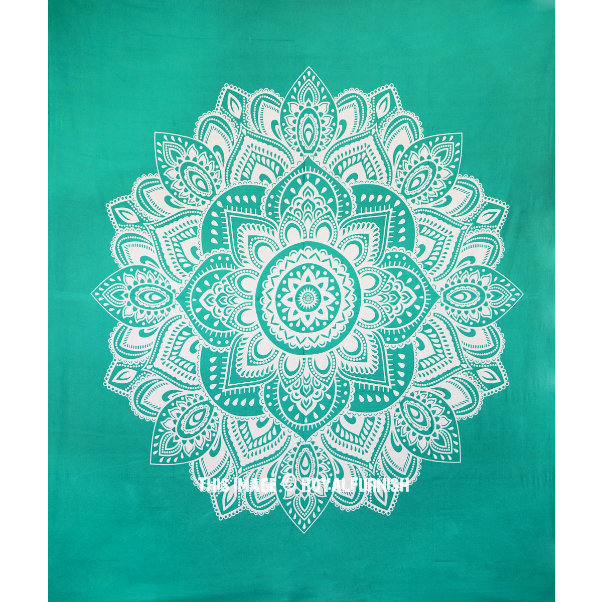 Teal Hippie Lotus Mandala Tapestry Medallion Wall Hanging Cotton Bedspread Bohemian Decor